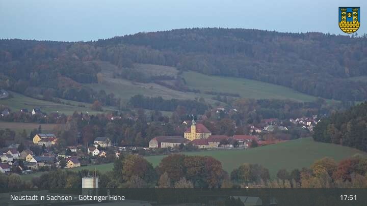 The webcam looks from the Götzinger Höhe to Neustadt in Saxony. This town in the Elbe Sandstone Mountains also includes the district of Rugiswalde, where you can find a small ski resort.
