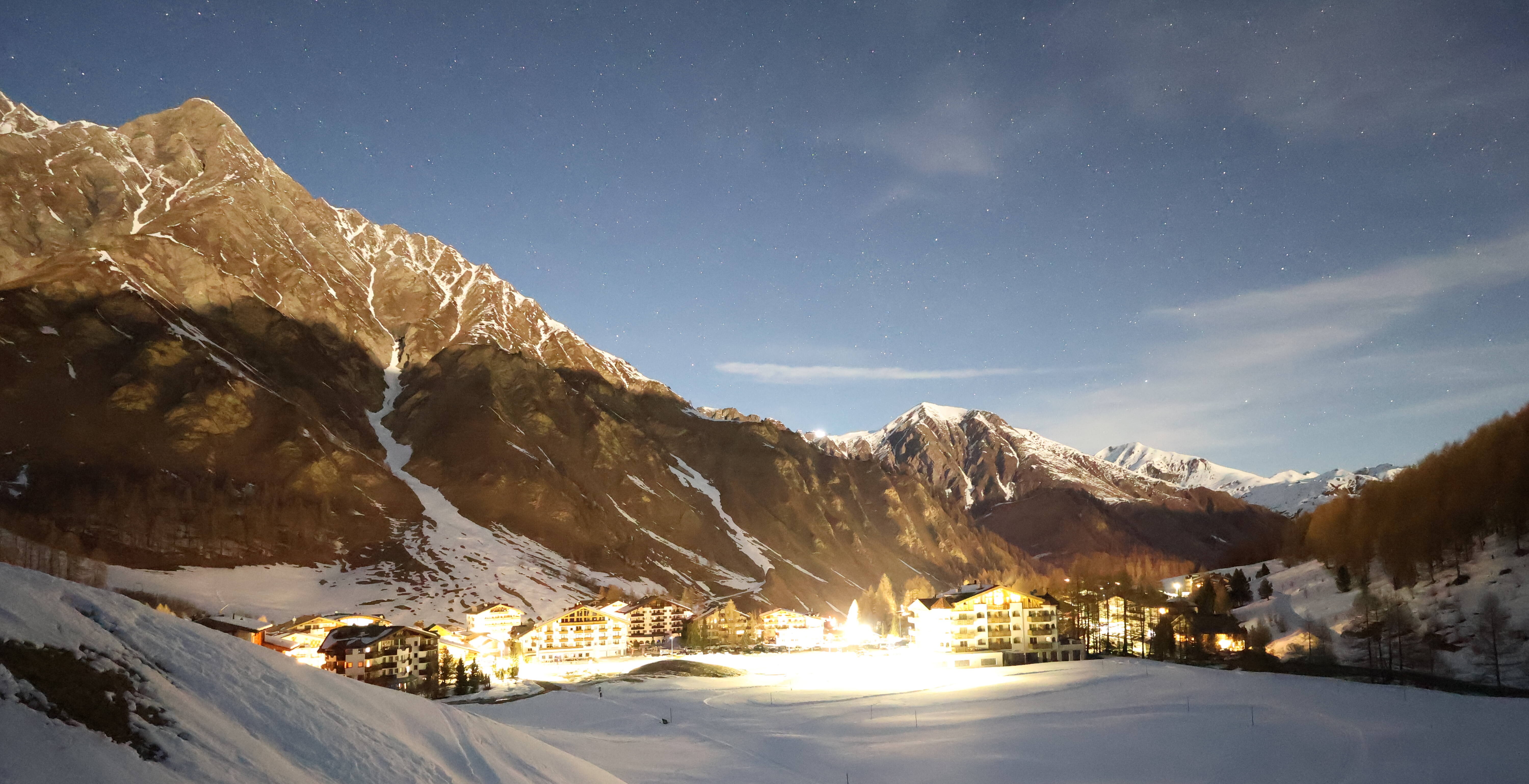 This webcam at Samnaun ski resort, part of Silvretta Arena, shows the view of Samnaun village.