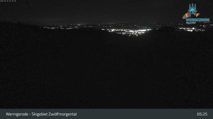 Archived webcam image showing Wernigerode - View of the Zwölfmorgental ski resort on 26 Feb 2026 at 05:21 04:00