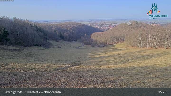 Archived webcam image showing Wernigerode - View of the Zwölfmorgental ski resort on 26 Feb 2026 at 13:21 12:00