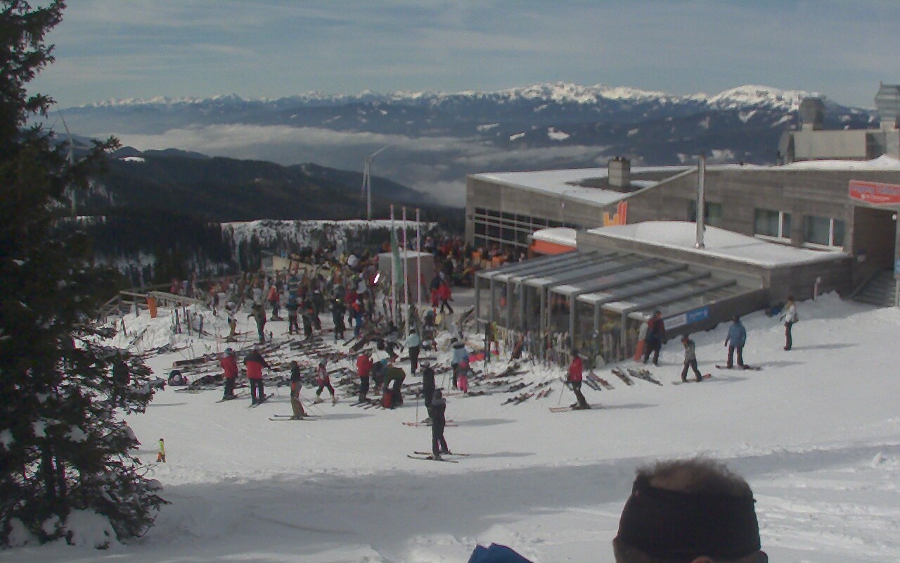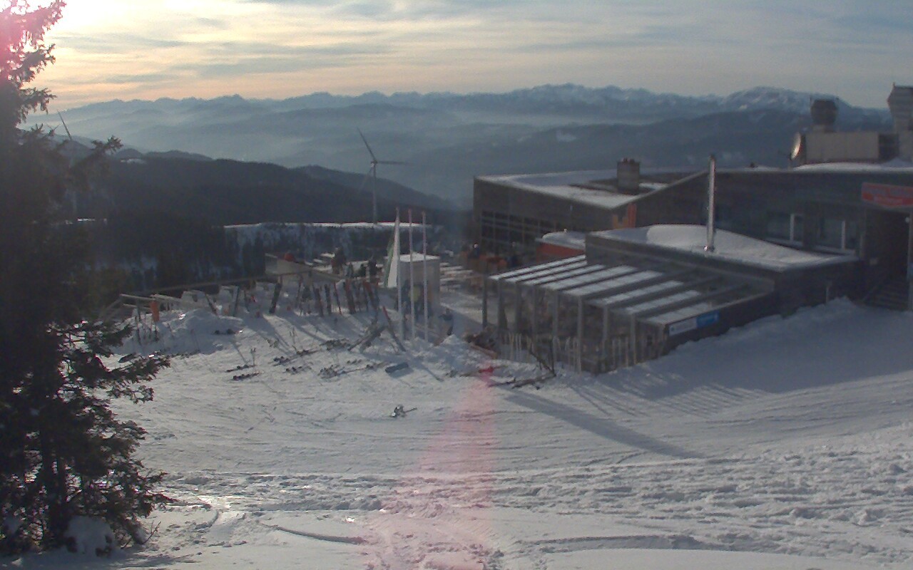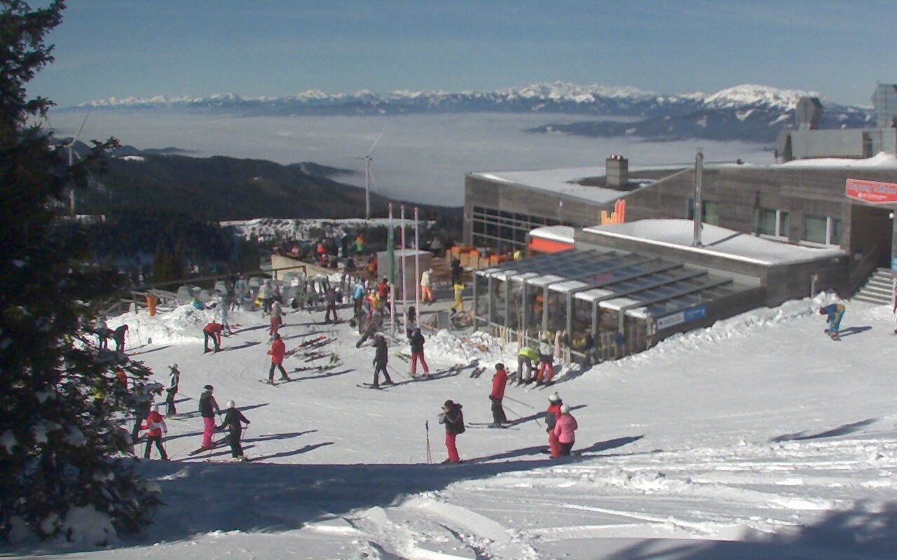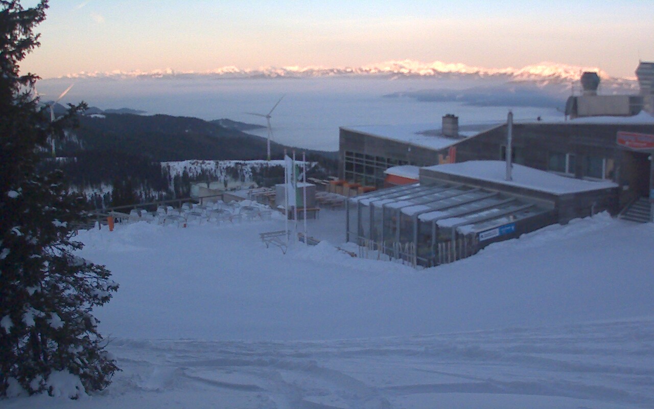 Outlook at the panoramic restaurant W11 at the top station of the lift Weißenelfbahn
