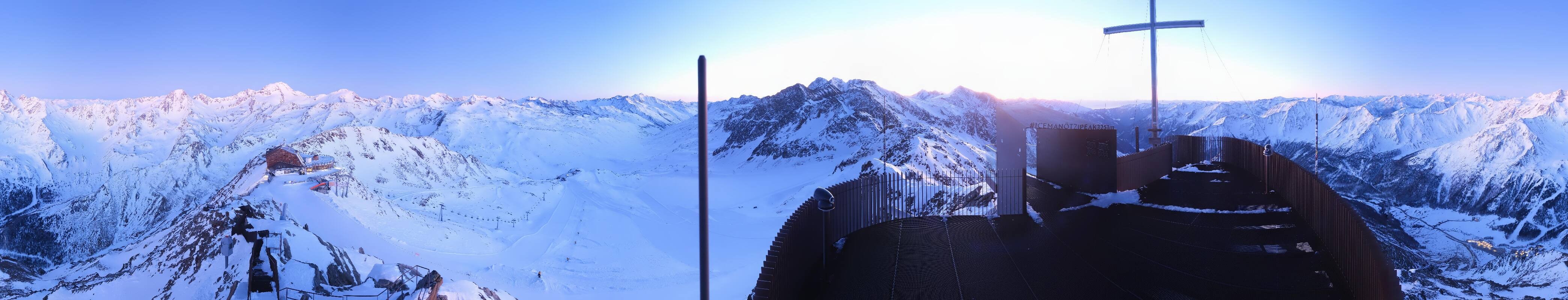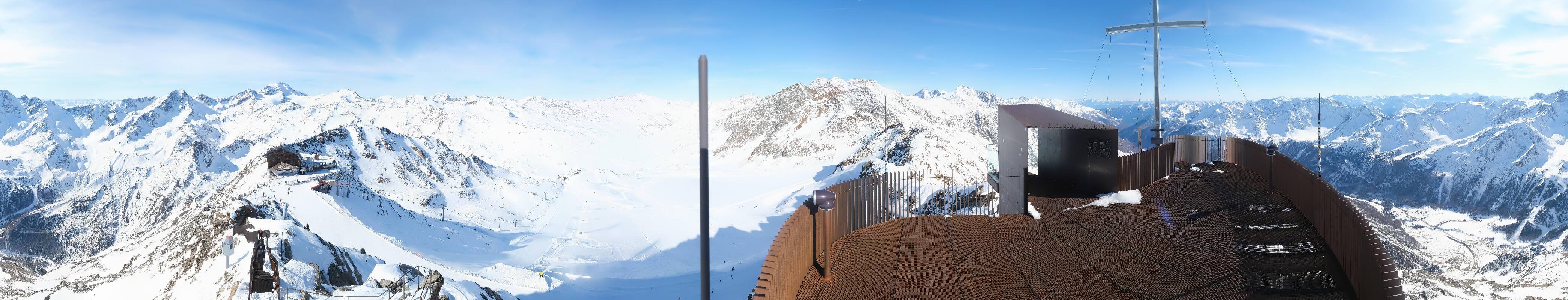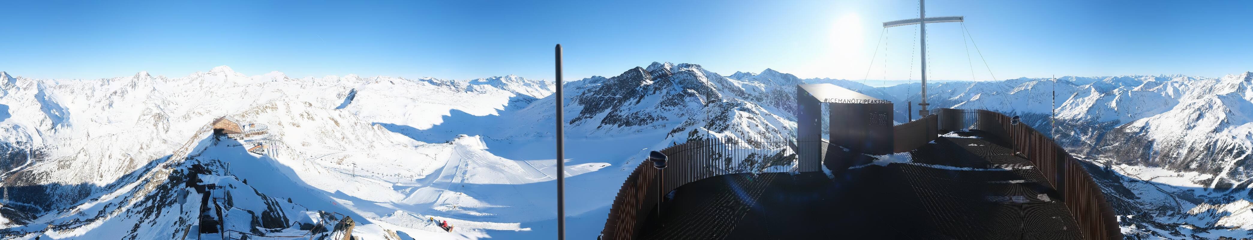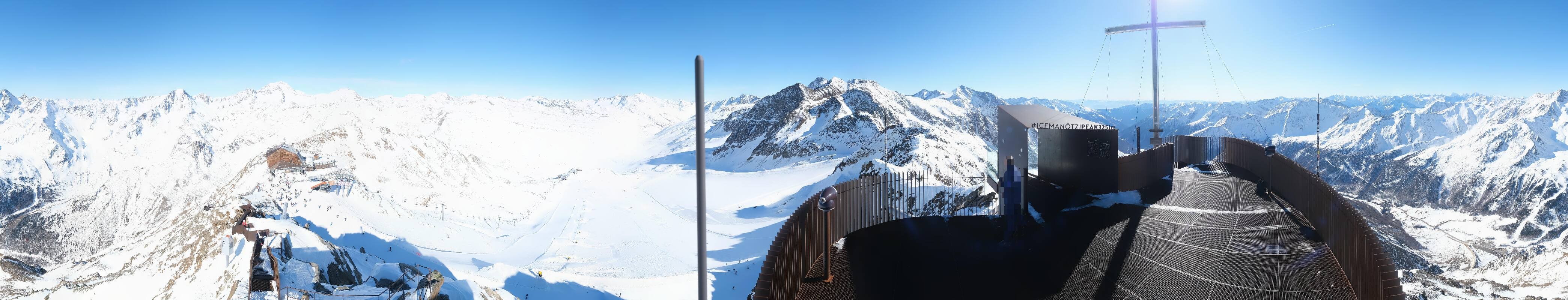 The webcam is located at the viewing platform Iceman Ötzi Peak on the Grawand peak and offers a great view of the mountain station of the Grawand chairlift and the slopes on the Val Senales Glacier.