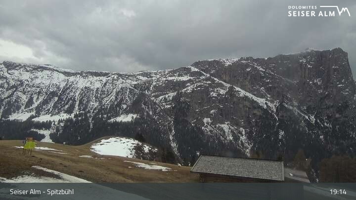 Archiviertes Webcam Bild: Seiser Alm: Bergstation Spitzbühl am 12.04.2026 um 19:19 Uhr Latest