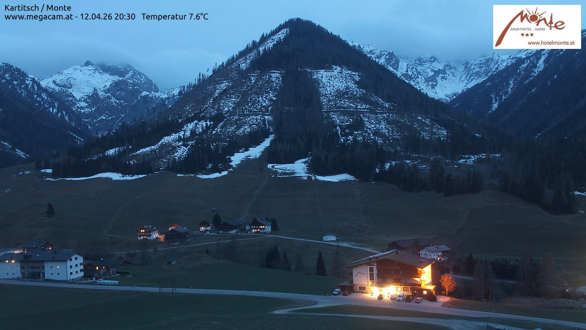 Archived webcam image showing Kartitsch - View Hotel Monte on 12 Apr 2026 at 20:39 Latest