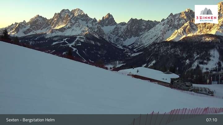 Archived webcam image showing Sextner Dolomites Skiing Mountain Helm on 26 Feb 2026 at 07:15 06:00