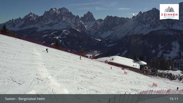 Archived webcam image showing Sextner Dolomites Skiing Mountain Helm on 26 Feb 2026 at 15:15 Latest