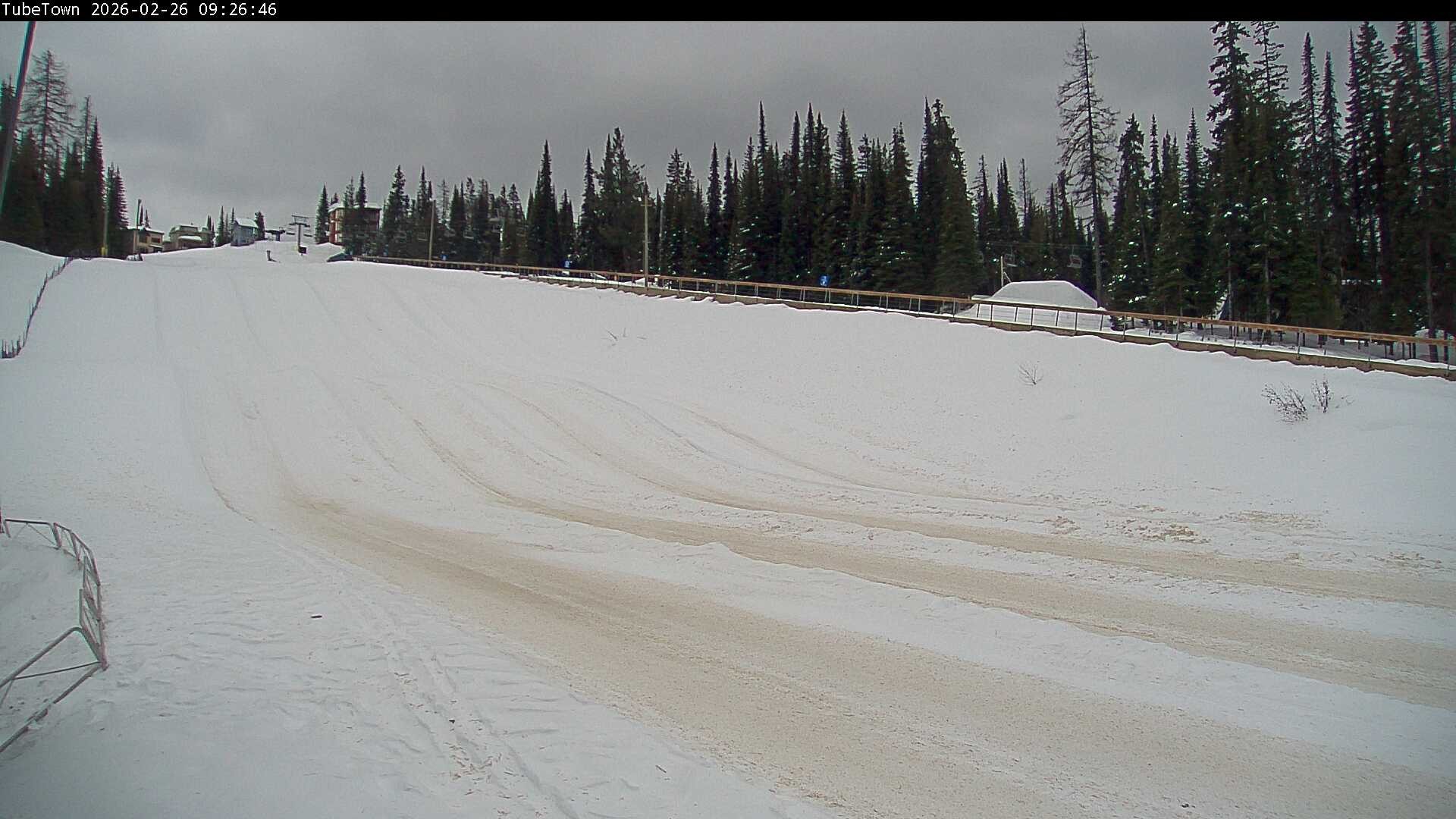 Archived webcam image showing Silver Star Mountain Resort: Tube Town Cam on 26 Feb 2026 at 08:17 23:00