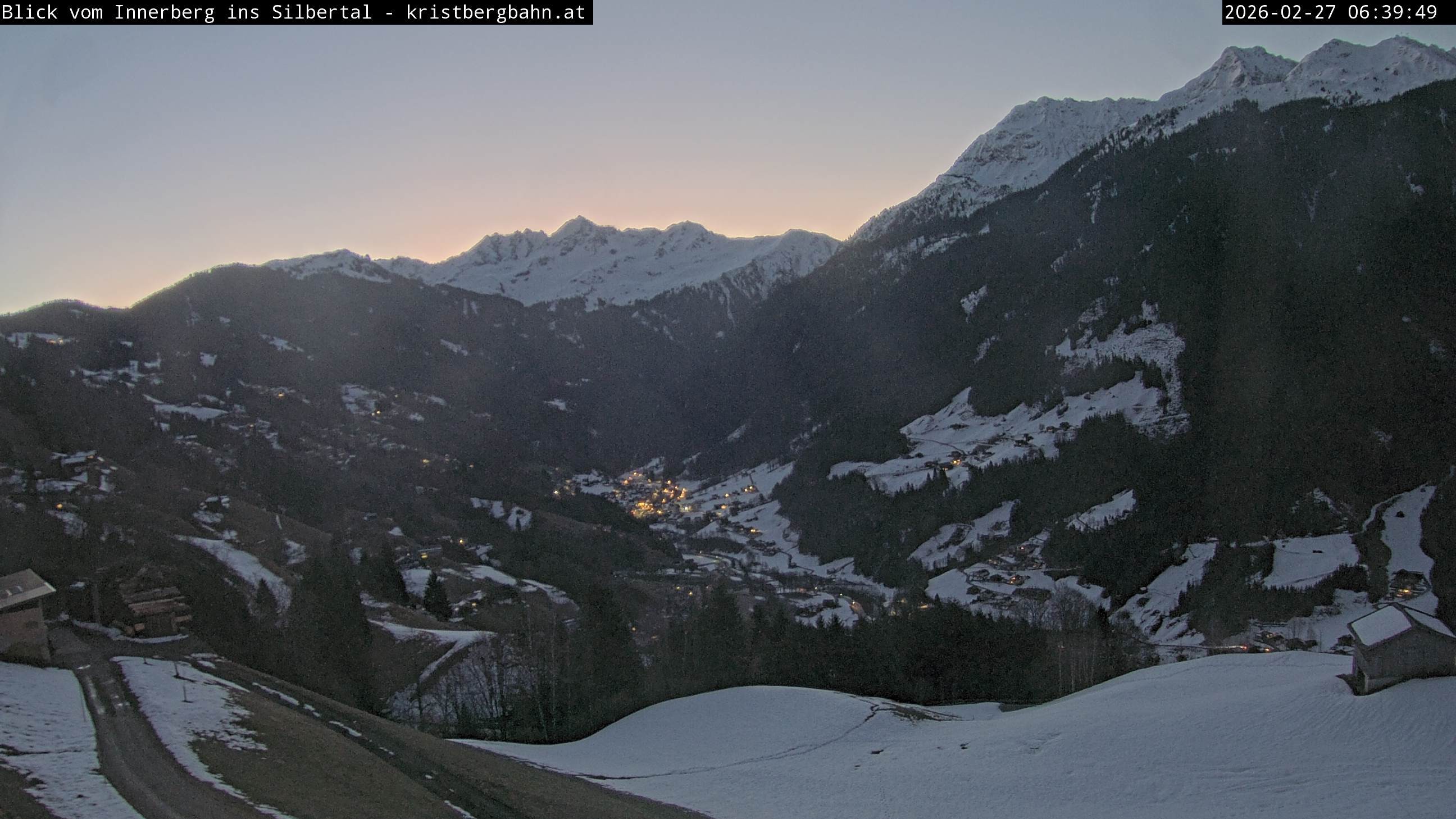 Archived webcam image showing View of Silbertal from Innerberg on 26 Feb 2026 at 06:12 05:00