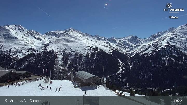 Archived webcam image showing Mountain Restaurant Gampen / Top Station Gampenbahn on 7 Apr 2026 at 13:16 12:00