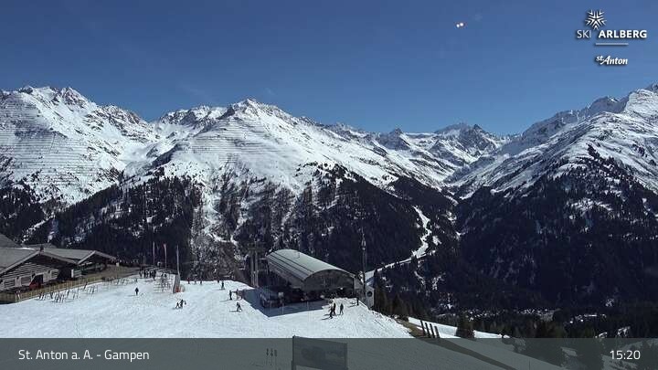 Archived webcam image showing Mountain Restaurant Gampen / Top Station Gampenbahn on 7 Apr 2026 at 15:16 Latest