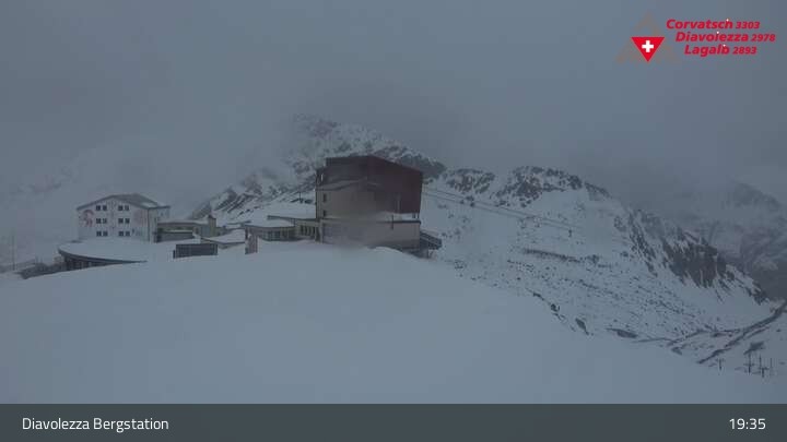 Archived webcam image showing Diavolezza - Top station on 3 Apr 2026 at 08:26 07:00