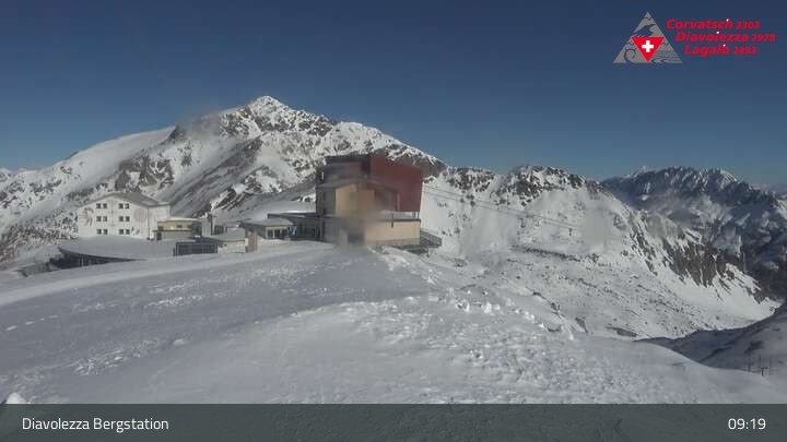 Archived webcam image showing Diavolezza - Top station on 3 Apr 2026 at 09:26 08:00