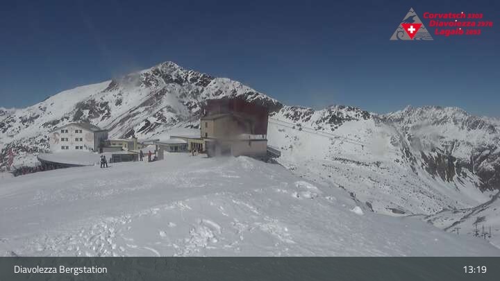 Archived webcam image showing Diavolezza - Top station on 3 Apr 2026 at 13:26 Latest