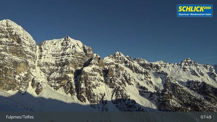 Archived webcam image showing Schlick 2000: Mitterjoch (Fulpmes) on 26 Feb 2026 at 08:16 07:00