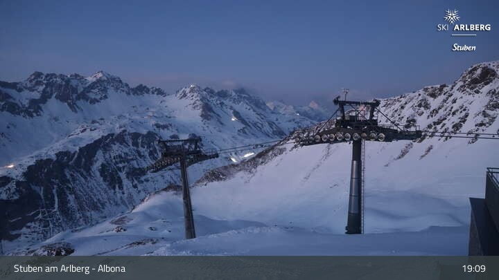 Archived webcam image showing Stuben: Albona (Ski Arlberg) on 18 Mar 2026 at 19:53 18:00