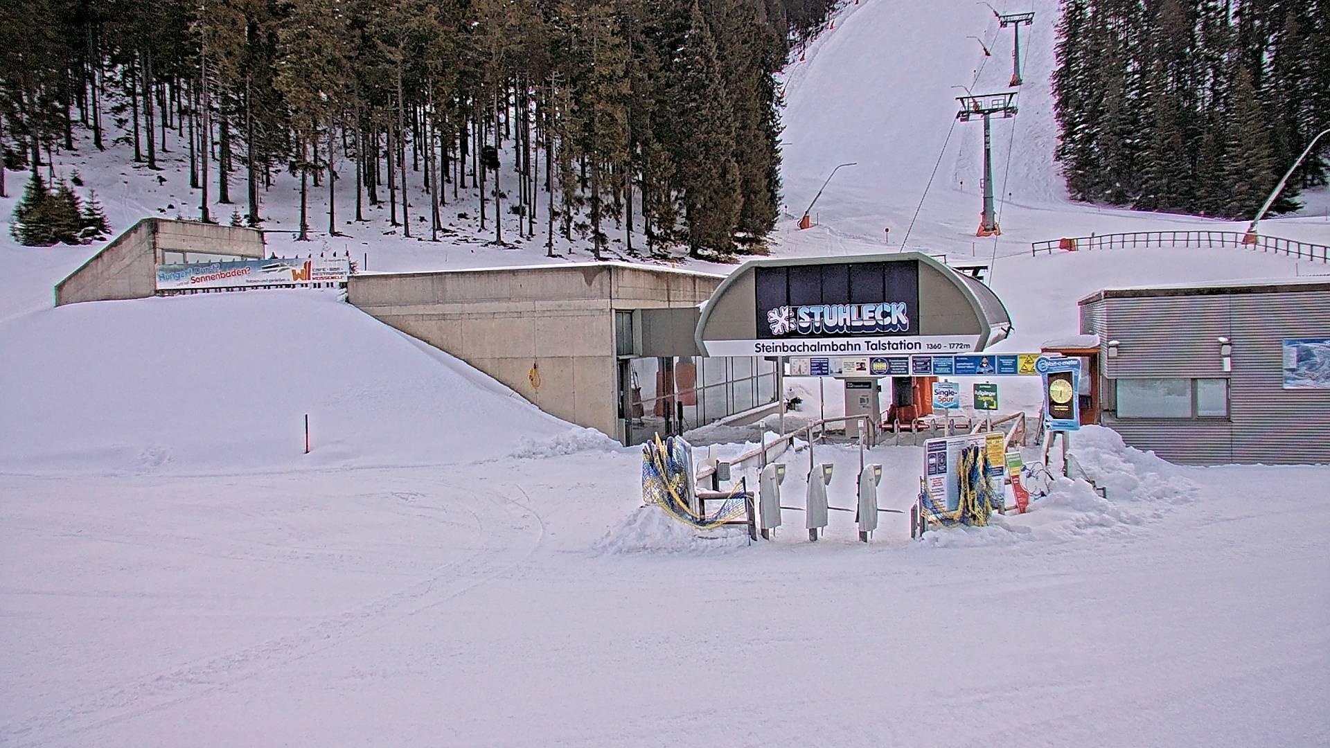 Archived webcam image showing Base station Seinbachalmbahn on 26 Feb 2026 at 08:27 07:00