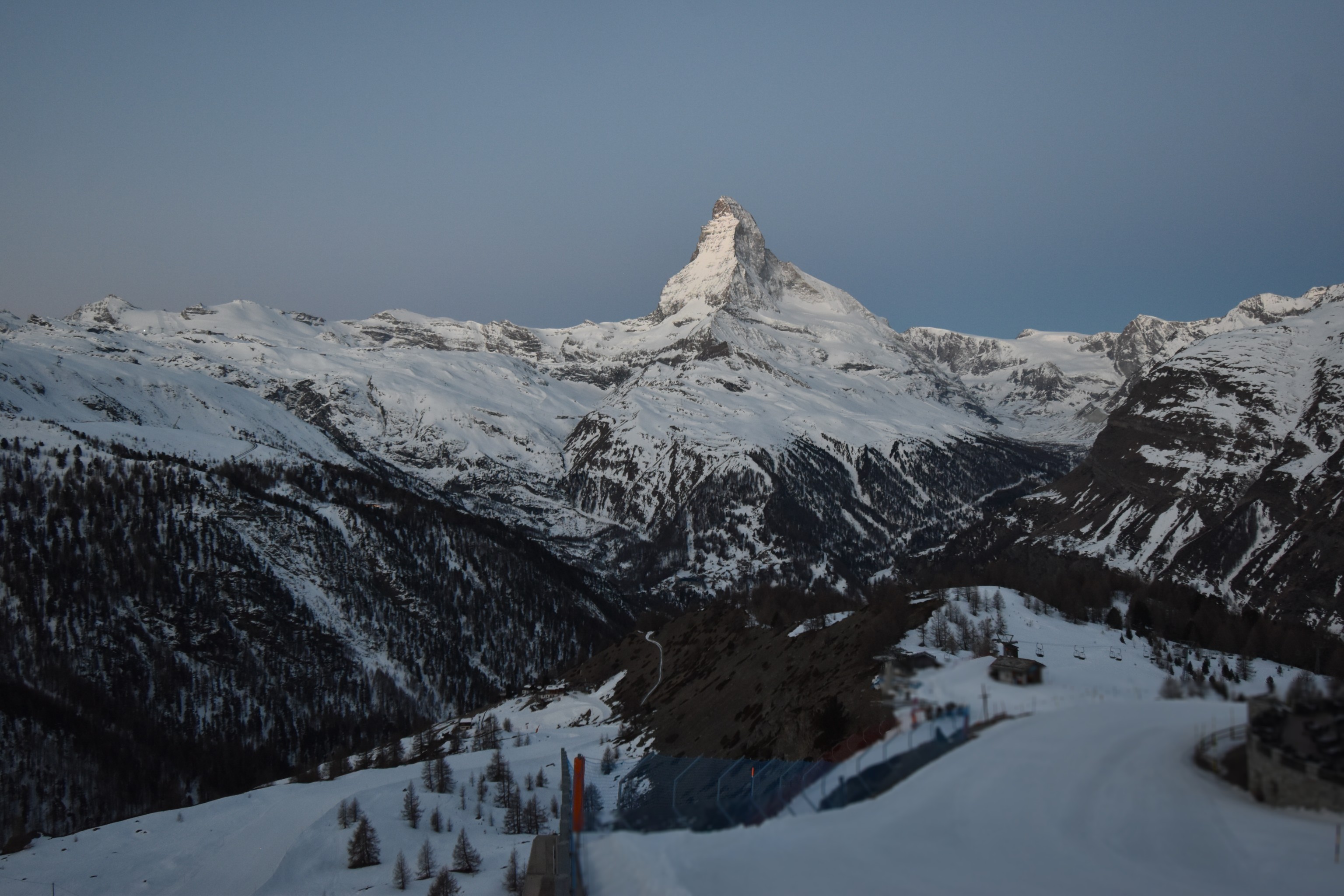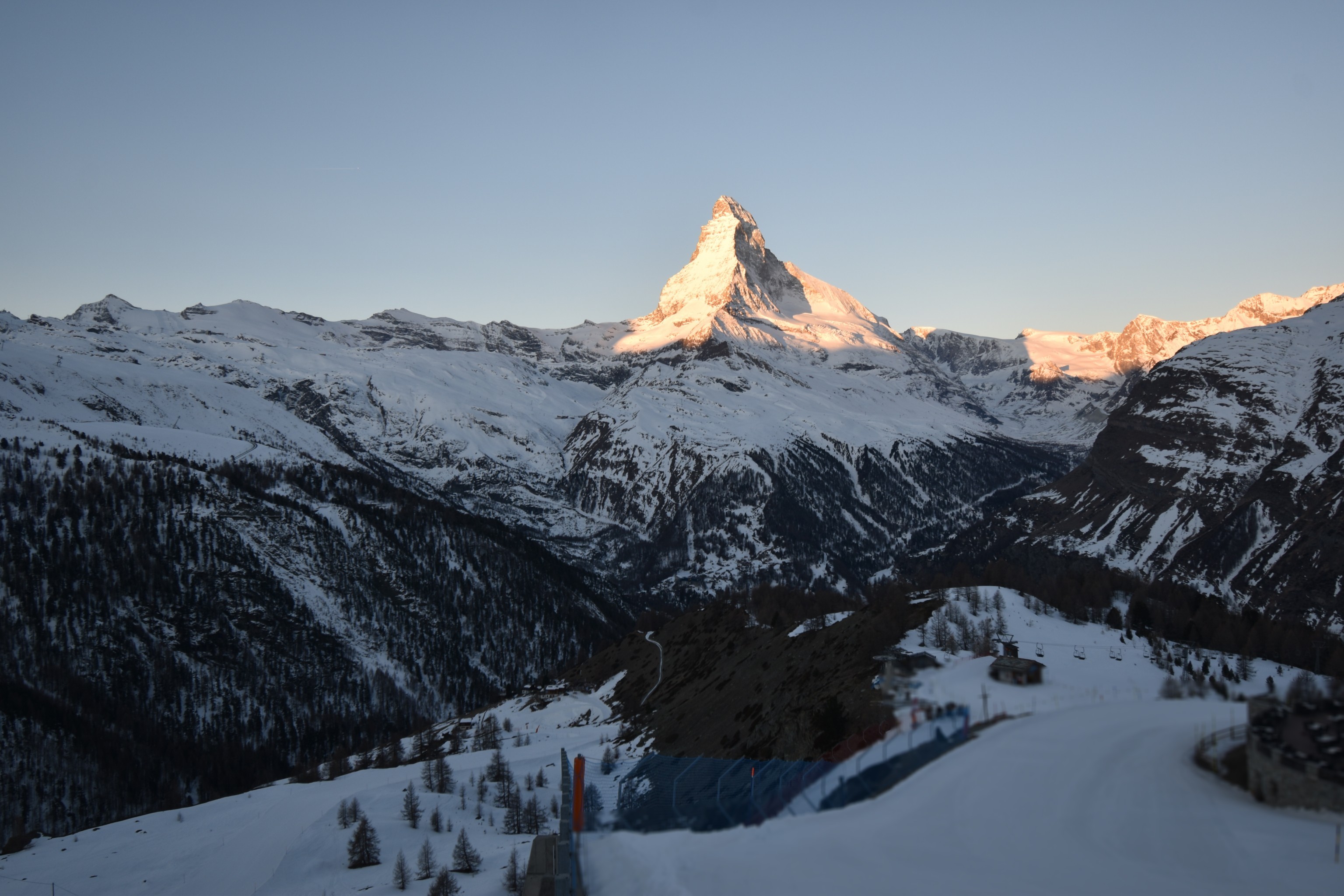 Archiviertes Webcam Bild: Zermatt: Station Sunnega mit Blick aufs Matterhorn am 13.03.2026 um 06:08 Uhr 06:00