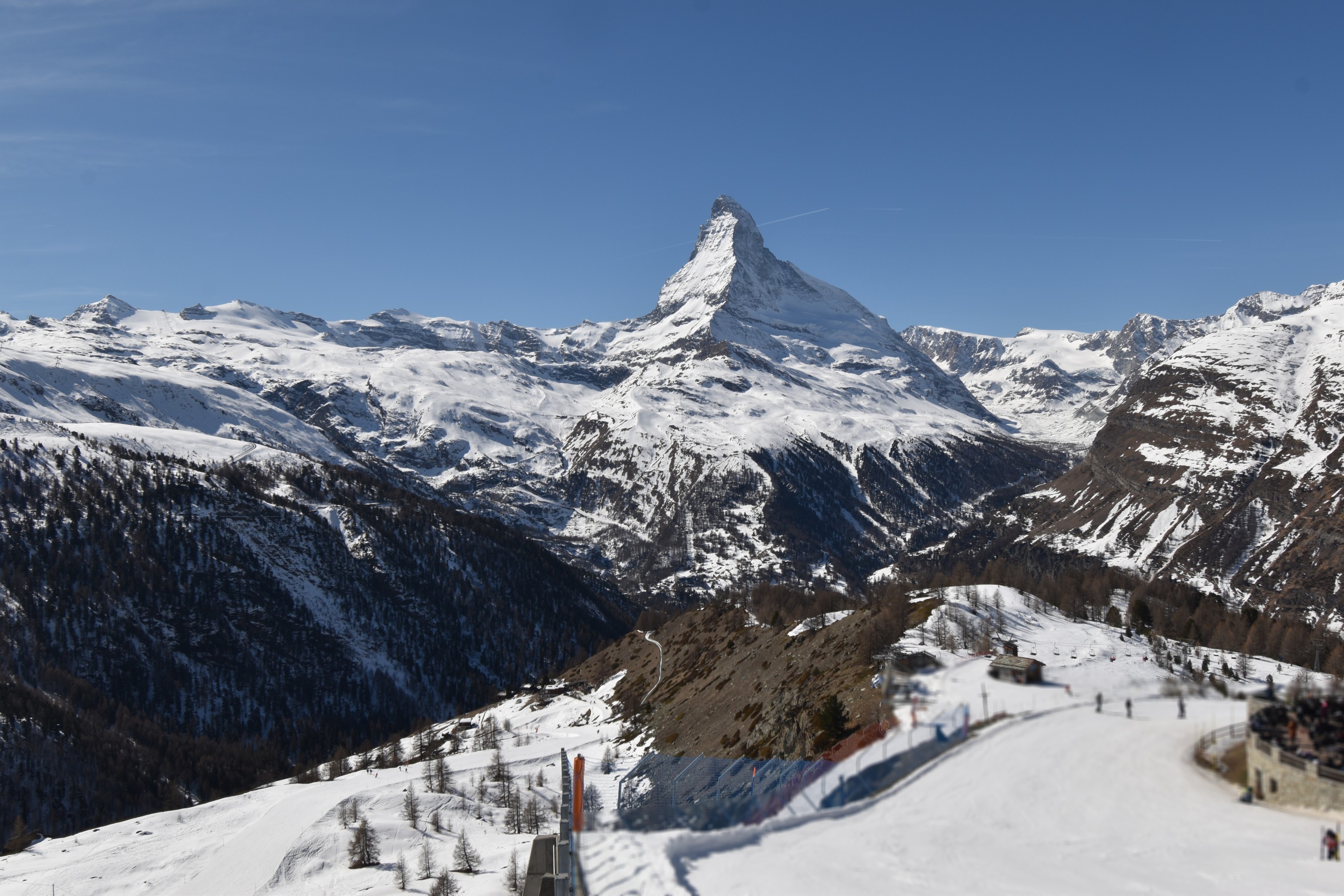 Archiviertes Webcam Bild: Zermatt: Station Sunnega mit Blick aufs Matterhorn am 13.03.2026 um 14:08 Uhr 14:00