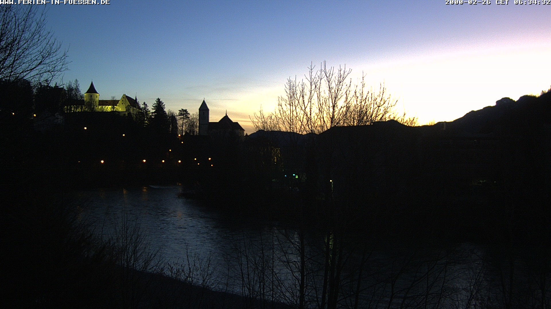 Archived webcam image showing View Lech in Füssen on Feb 26, 2026 at 12:55 AM 6:00 PM