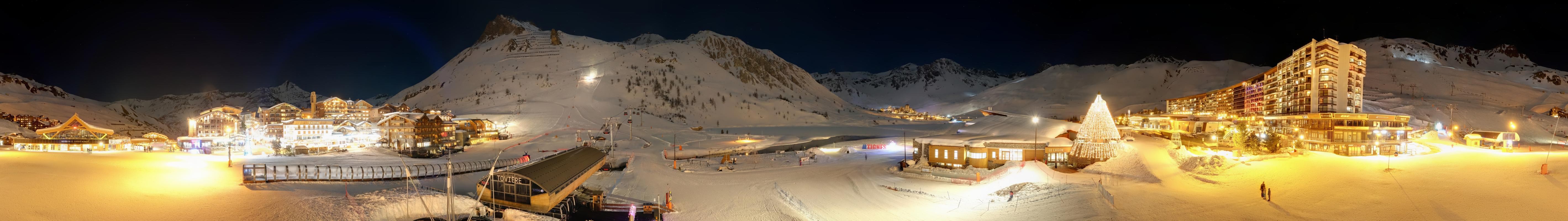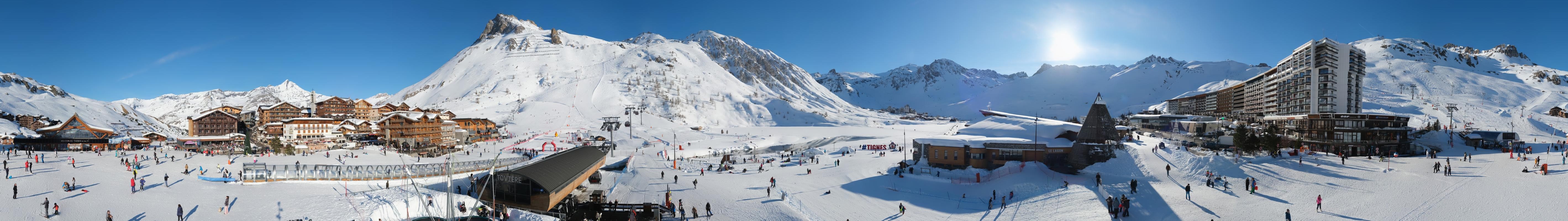 Panoramic view from Le Lac de Tignes to base station Toviere
