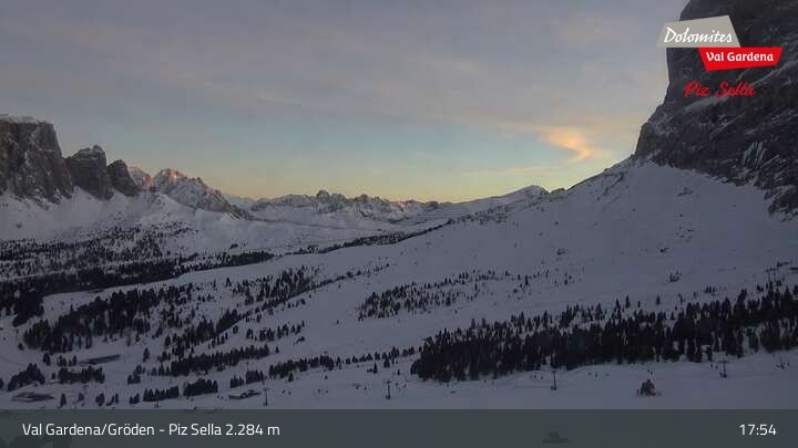 Located at the top station of Piz Sella in the ski area Val Gardena the webcam is looking towards Col Rodella, Sassolungo and the Sella group.
