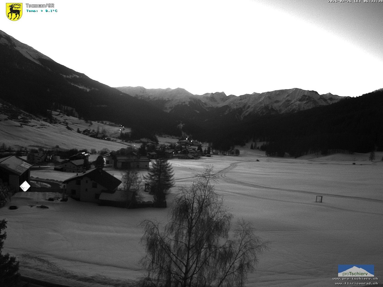 Archived webcam image showing Tschierv on 26 Feb 2026 at 06:56 05:00
