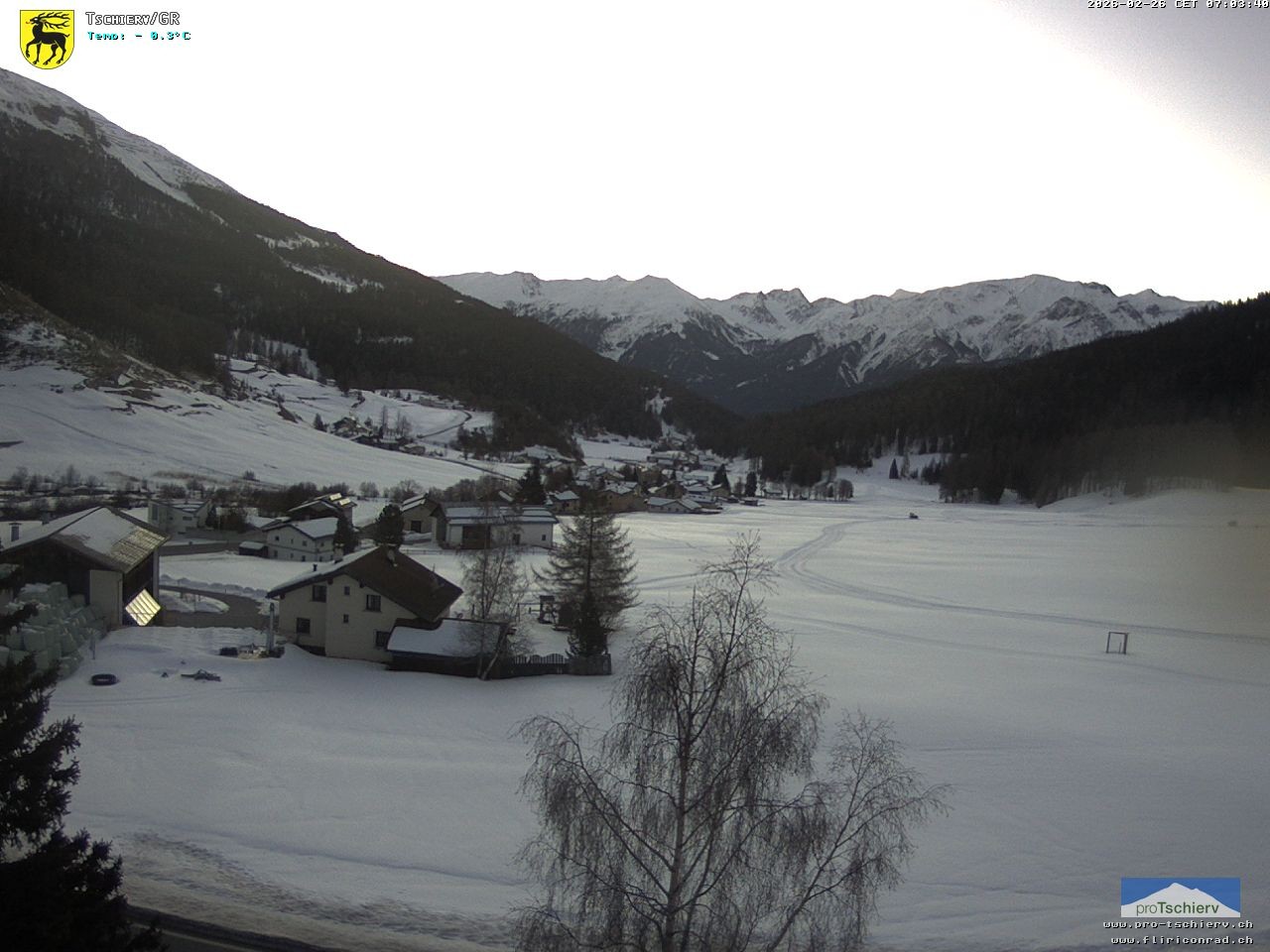 Archived webcam image showing Tschierv on 26 Feb 2026 at 07:56 06:00