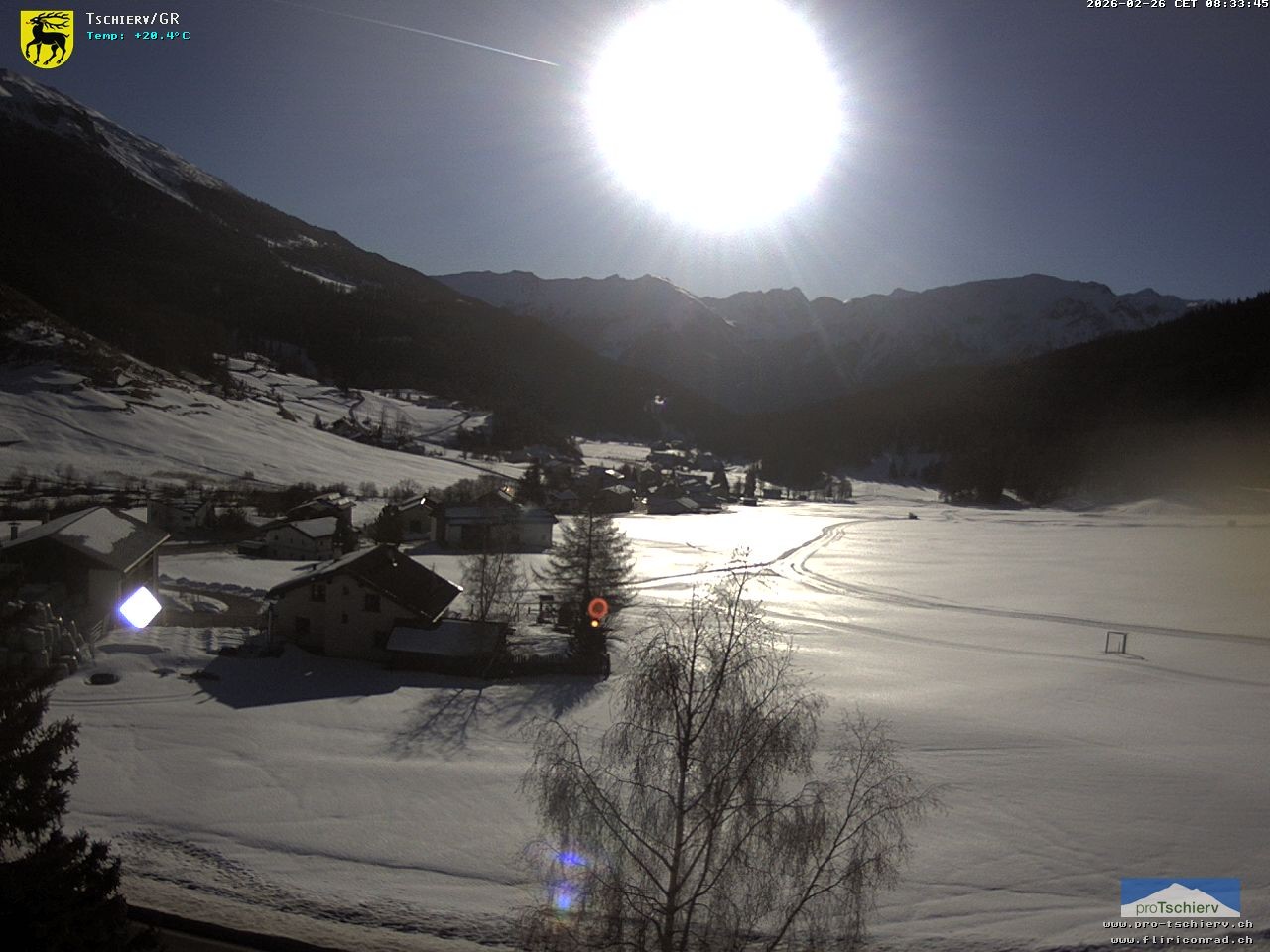 Archived webcam image showing Tschierv on 26 Feb 2026 at 08:56 07:00