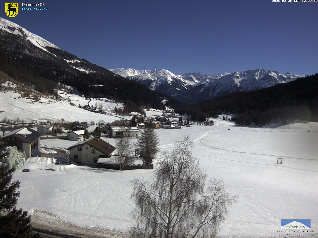 Archived webcam image showing Tschierv on 26 Feb 2026 at 12:56 11:00