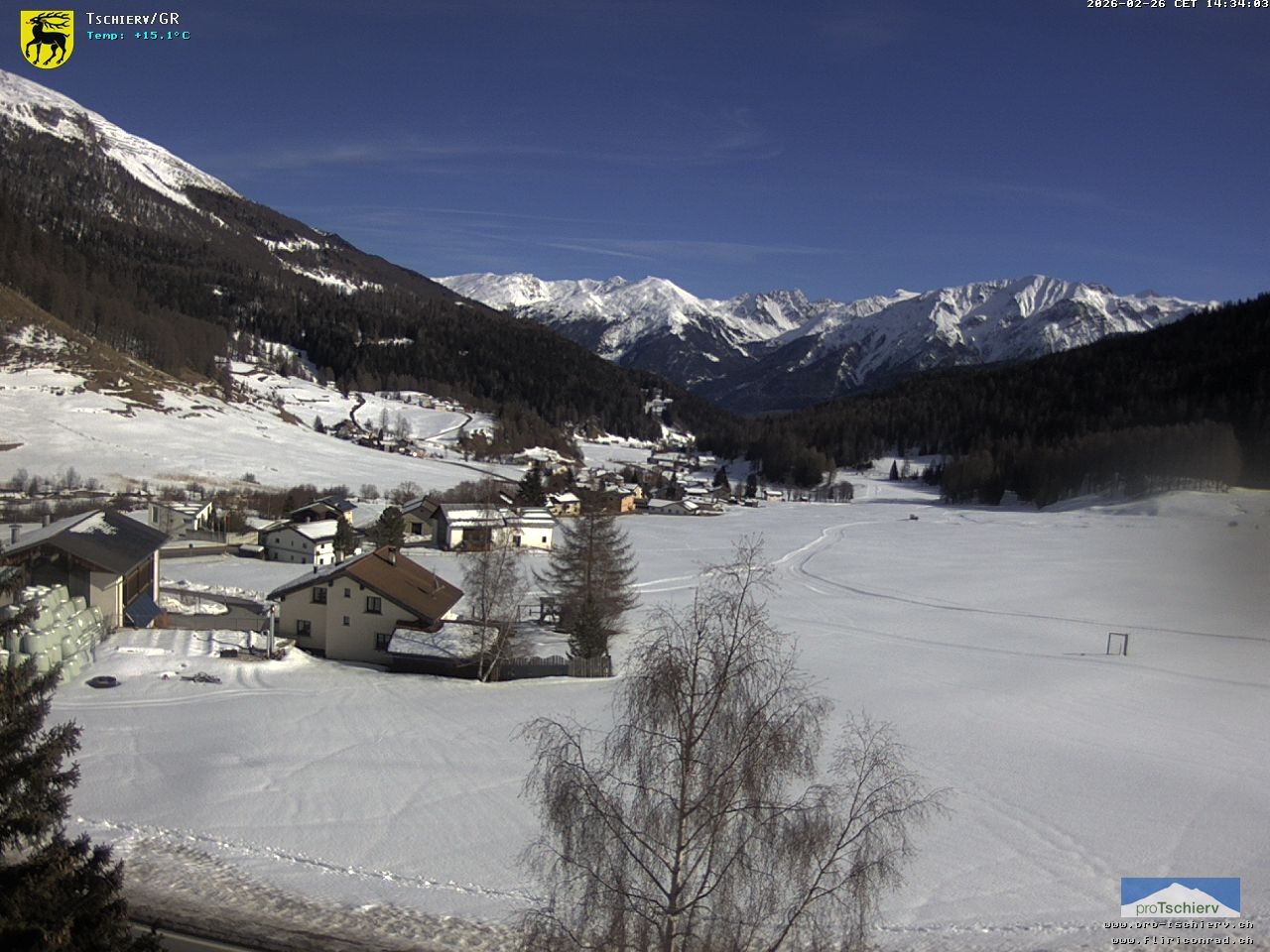 Archived webcam image showing Tschierv on 26 Feb 2026 at 14:56 Latest