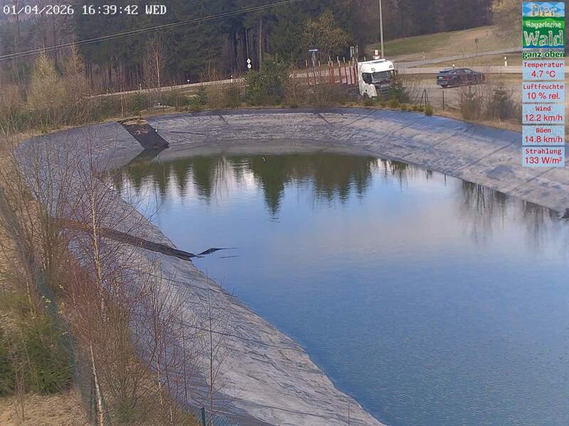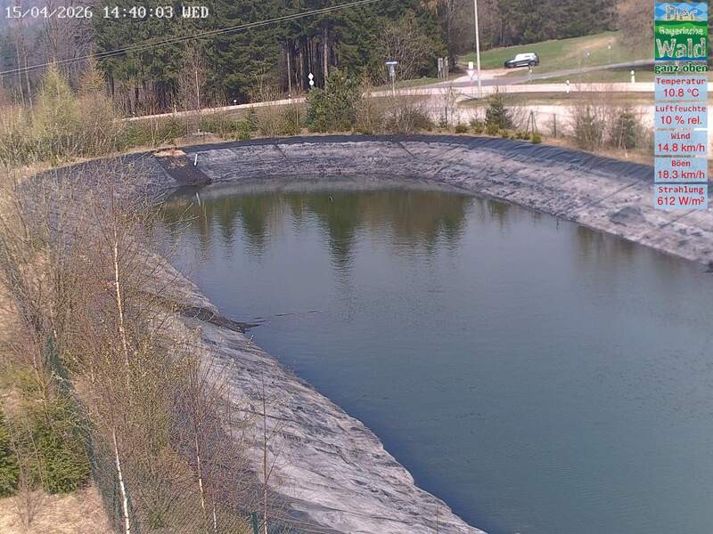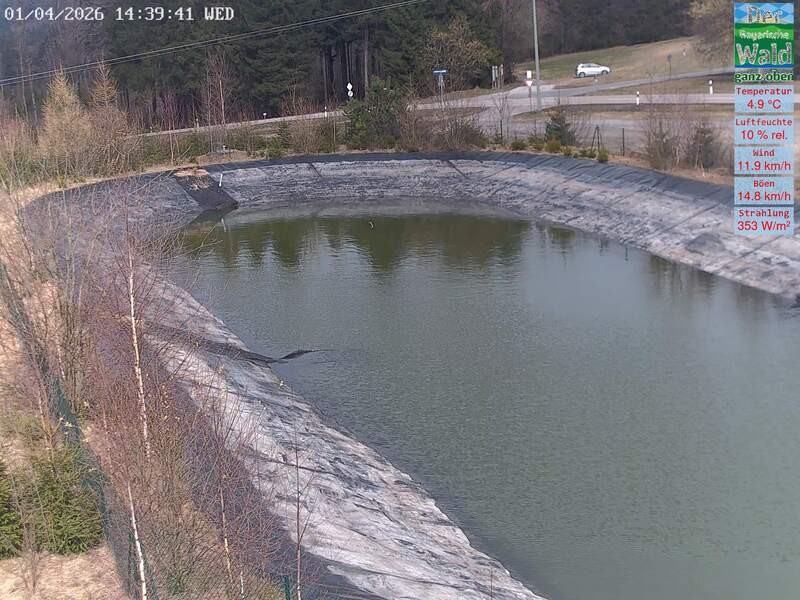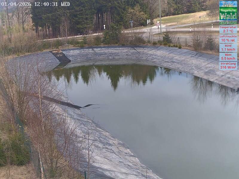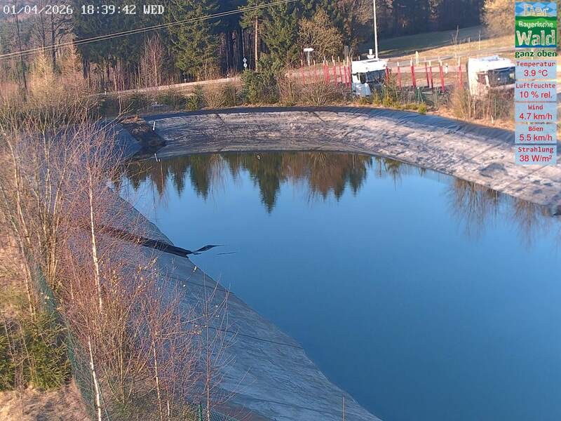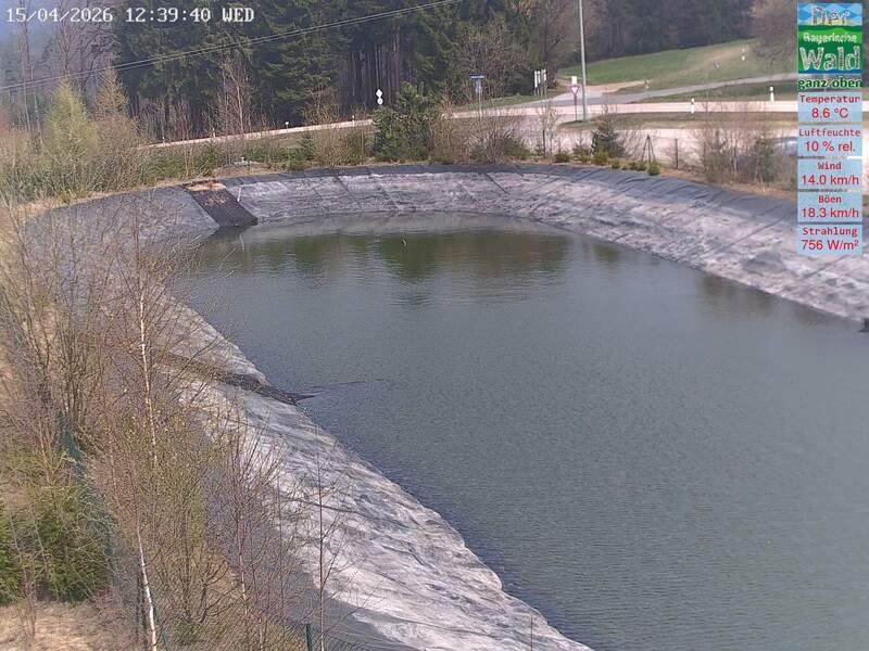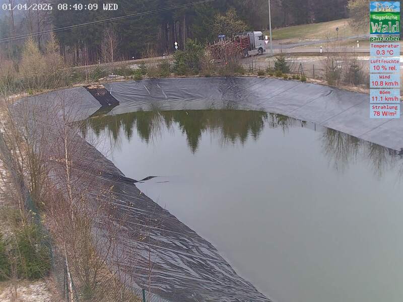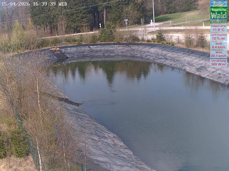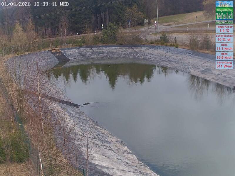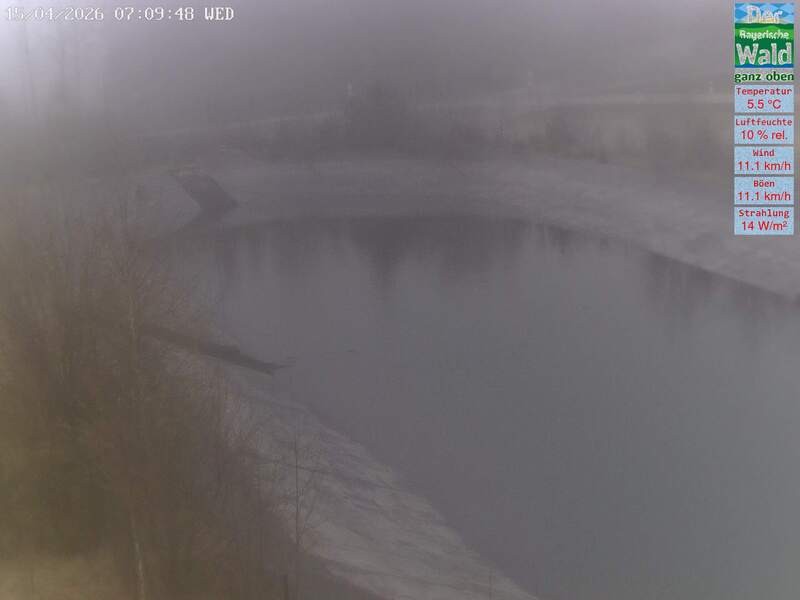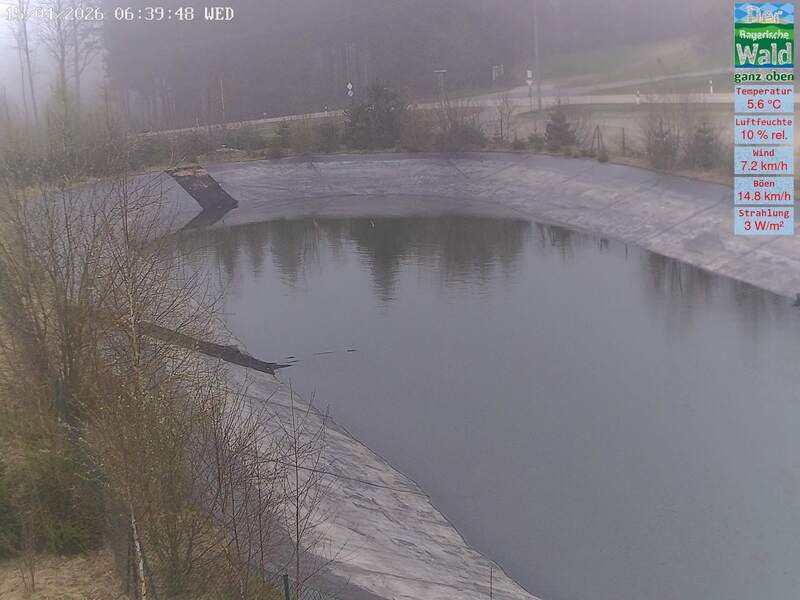 View to the north from the roof of the service building at the DSV nordic aktiv center Oberer Bayerischer Wald in Althütte. Among other tracks, the Grüß-Gott cross-country ski trail starts here.