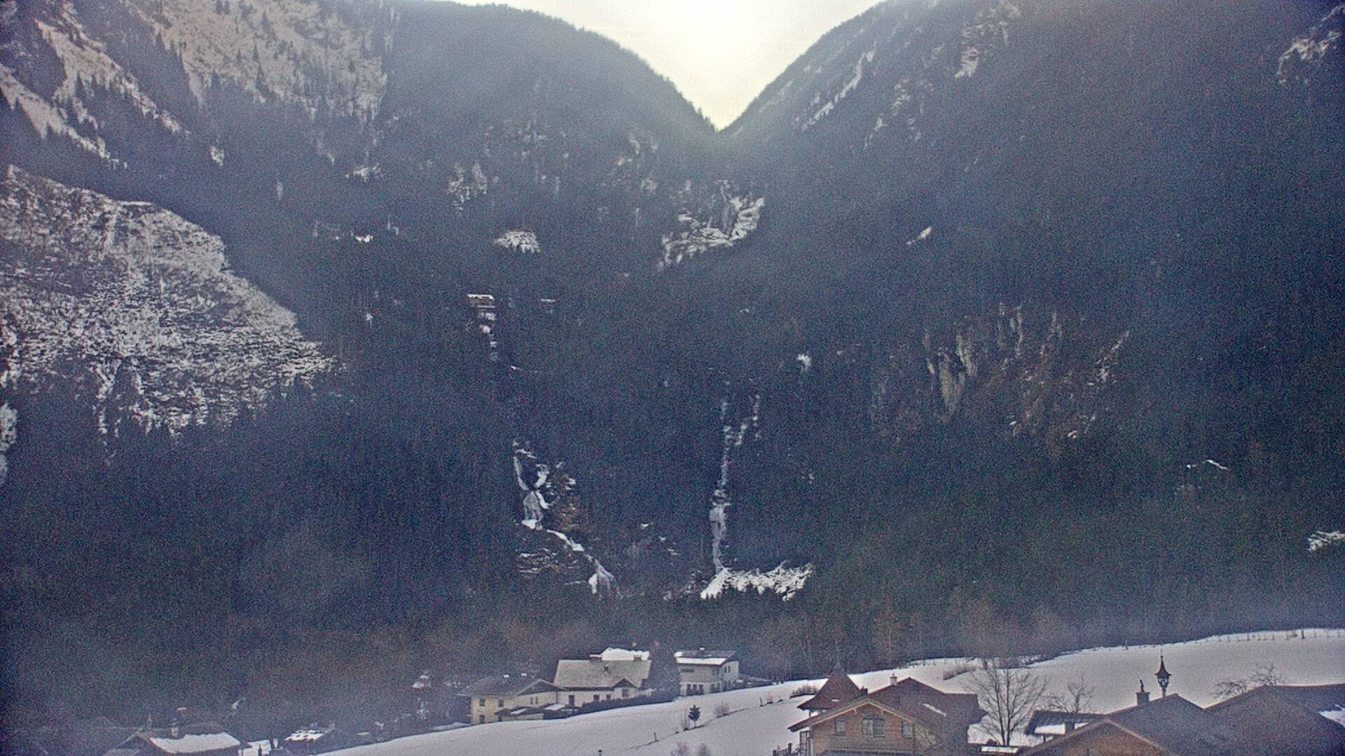 Archived webcam image showing Waterfalls Krimml on 26 Feb 2026 at 10:18 09:00
