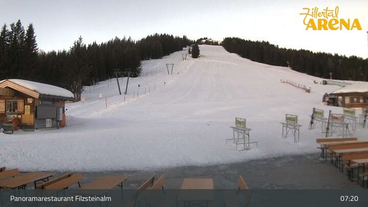 Archived webcam image showing Zillertal Arena: Panoramic Restaurant Filzsteinalm on 26 Feb 2026 at 07:06 06:00
