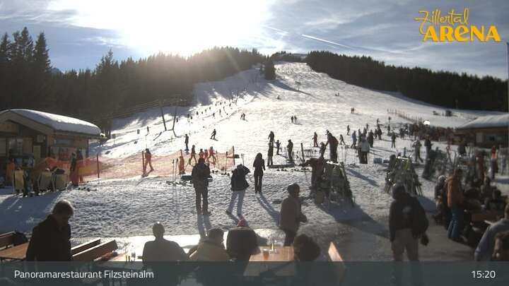 Archived webcam image showing Zillertal Arena: Panoramic Restaurant Filzsteinalm on 26 Feb 2026 at 15:06 Latest