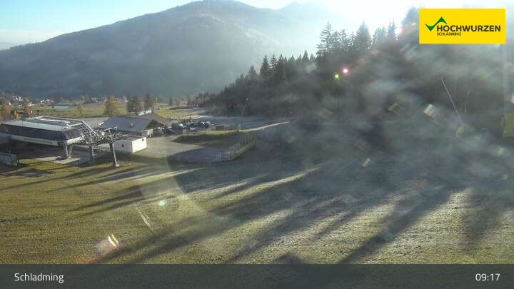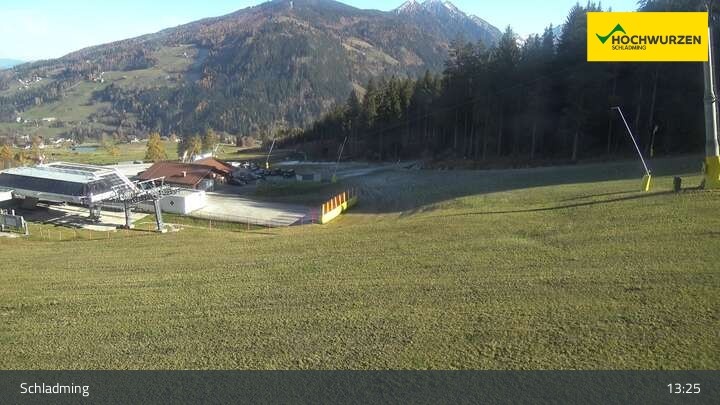 The webcam shows you the gondola Gipfelbahn Hochwurzen as well as the chairlift Rohrmoos II.