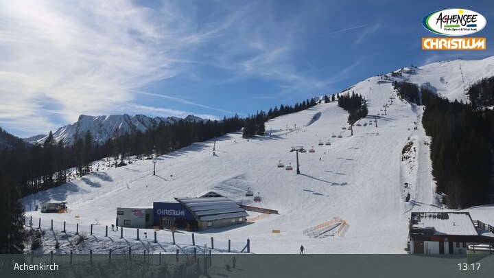 The webcan shows the view towards ski resort Chritslum in Achenkirch at Lake Achensee in Tyrol.