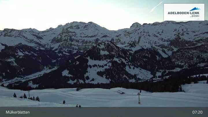 Archived webcam image showing Mülkerblatten (Lenk at Simmental valley) on 26 Feb 2026 at 07:34 06:00