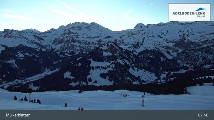 Archived webcam image showing Mülkerblatten (Lenk at Simmental valley) on 26 Feb 2026 at 08:34 07:00
