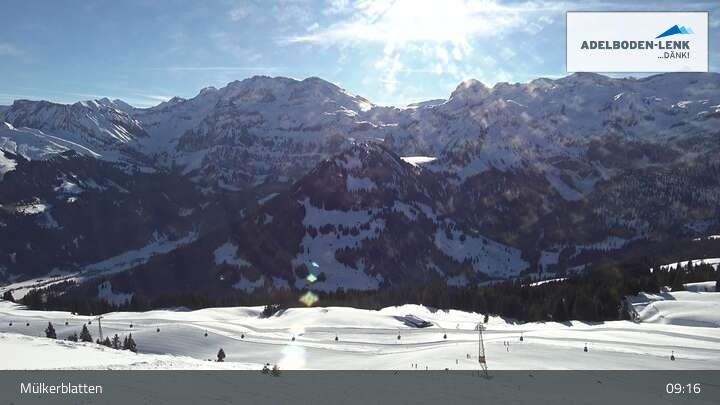 Archived webcam image showing Mülkerblatten (Lenk at Simmental valley) on 26 Feb 2026 at 09:34 08:00