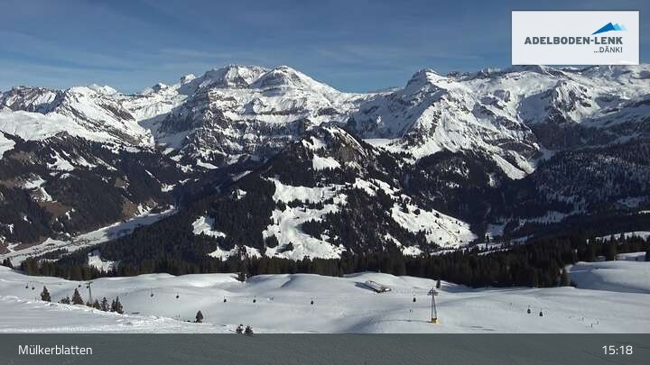 Archived webcam image showing Mülkerblatten (Lenk at Simmental valley) on 26 Feb 2026 at 15:34 14:00