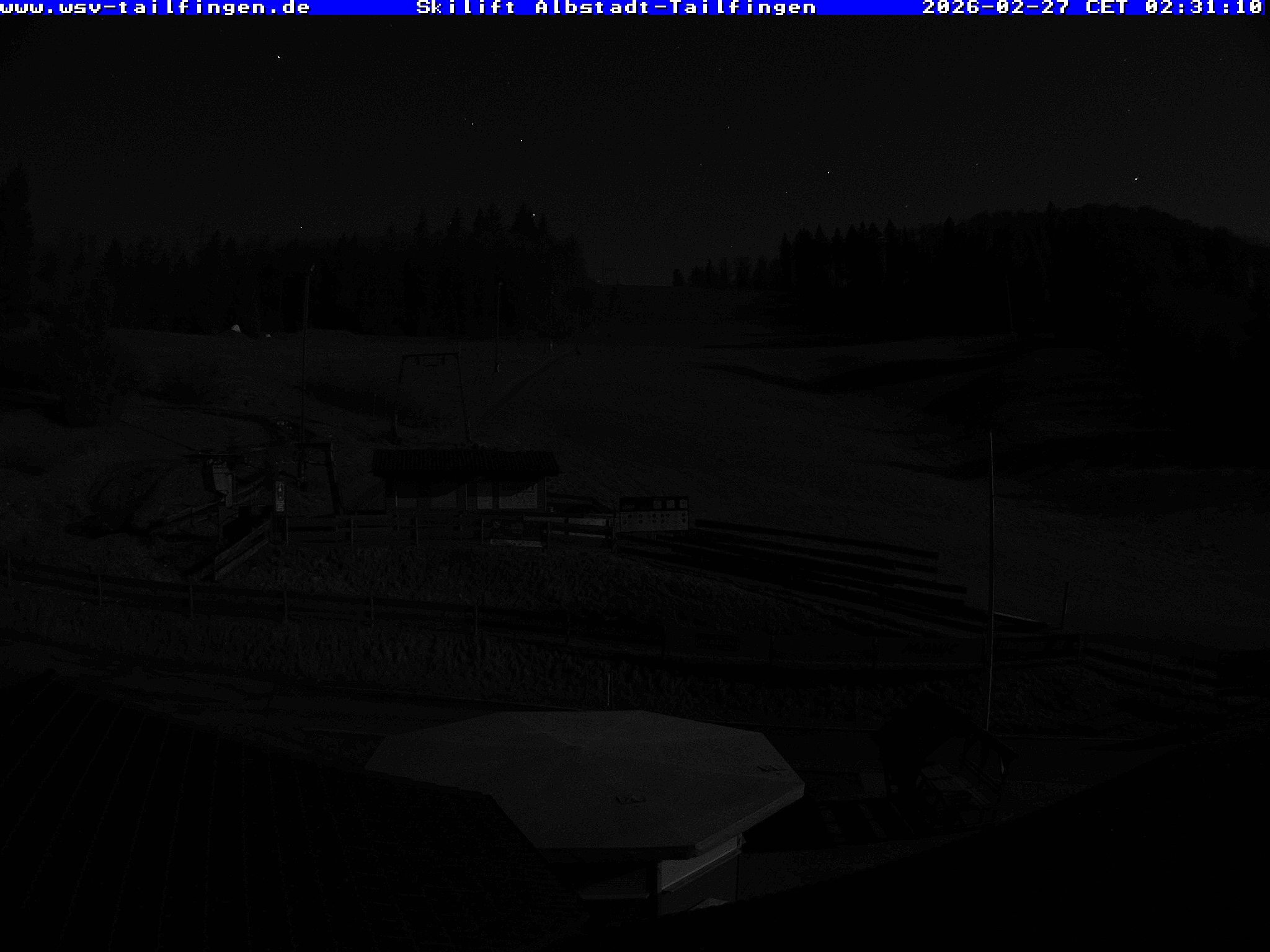 Archived webcam image showing The roof of the ski hut Schalkental at Schwäbische Alb on 26 Feb 2026 at 02:56 01:00