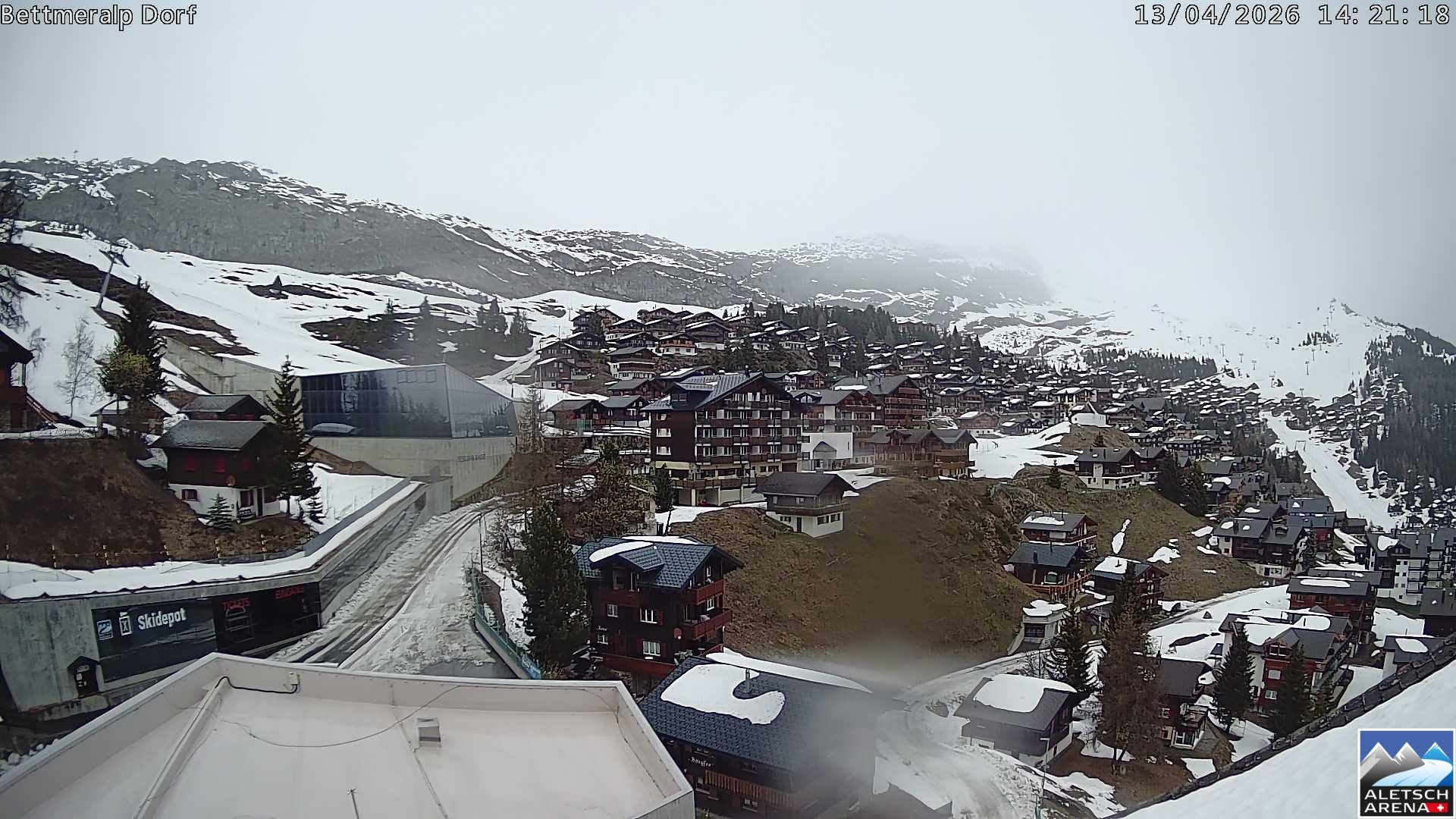 Archived webcam image showing Aletsch Arena: Dorf Bettmeralp on 13 Apr 2026 at 14:28 Latest