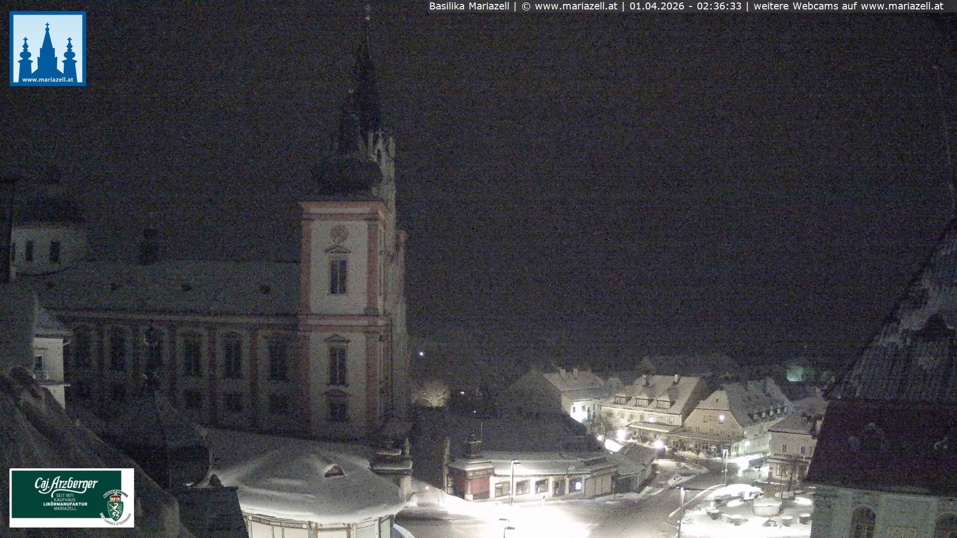 Archived webcam image showing Basilica in Mariazell on 1 Apr 2026 at 02:49 01:00