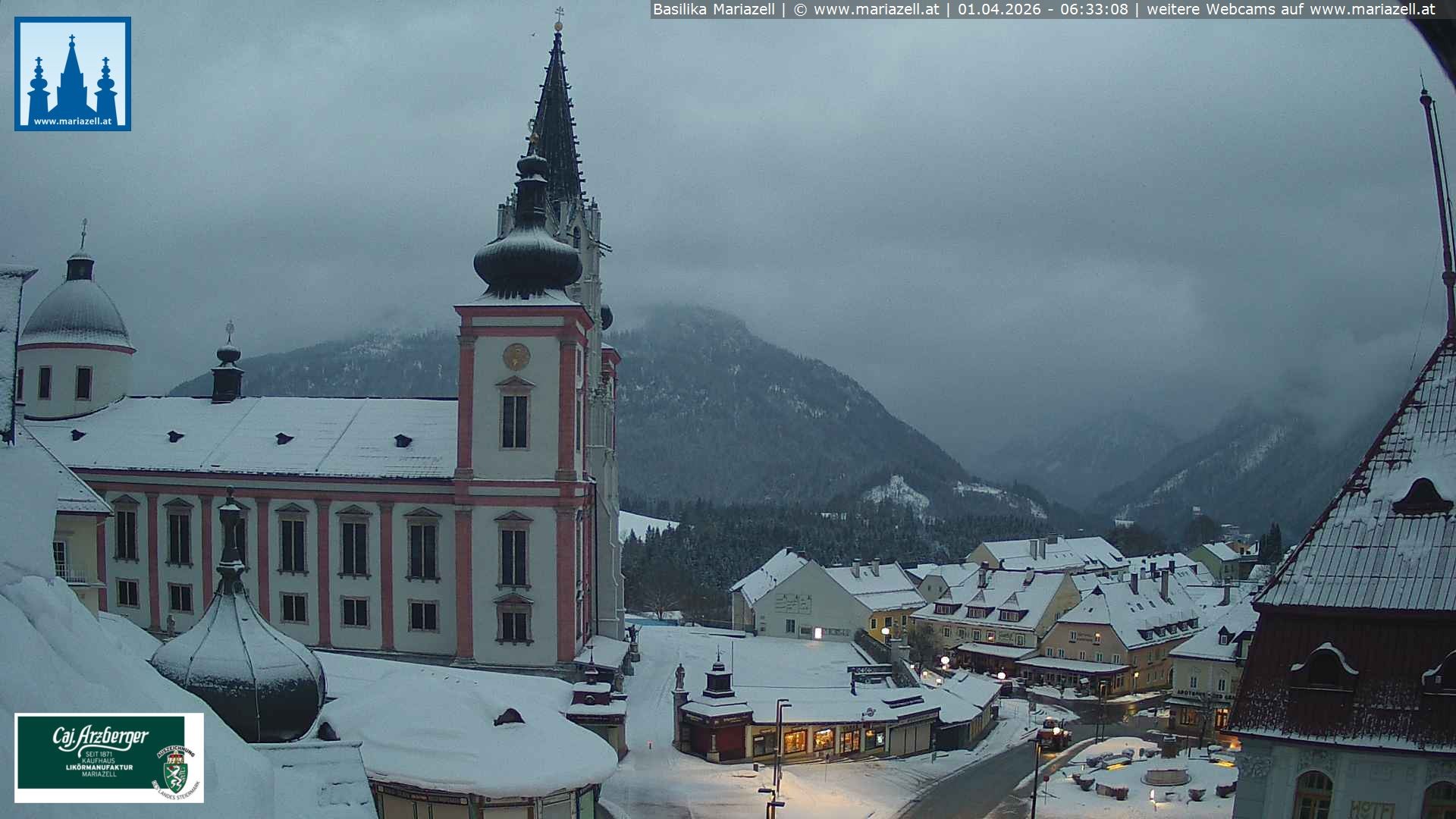 Archived webcam image showing Basilica in Mariazell on 1 Apr 2026 at 07:49 06:00