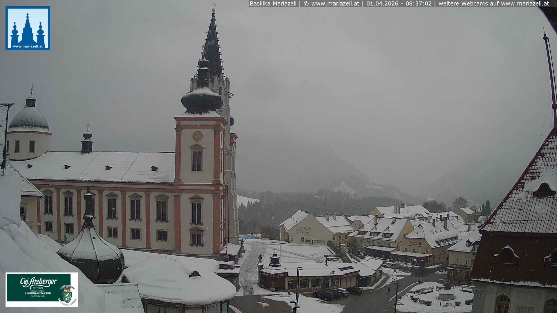 Archived webcam image showing Basilica in Mariazell on 1 Apr 2026 at 08:49 Latest