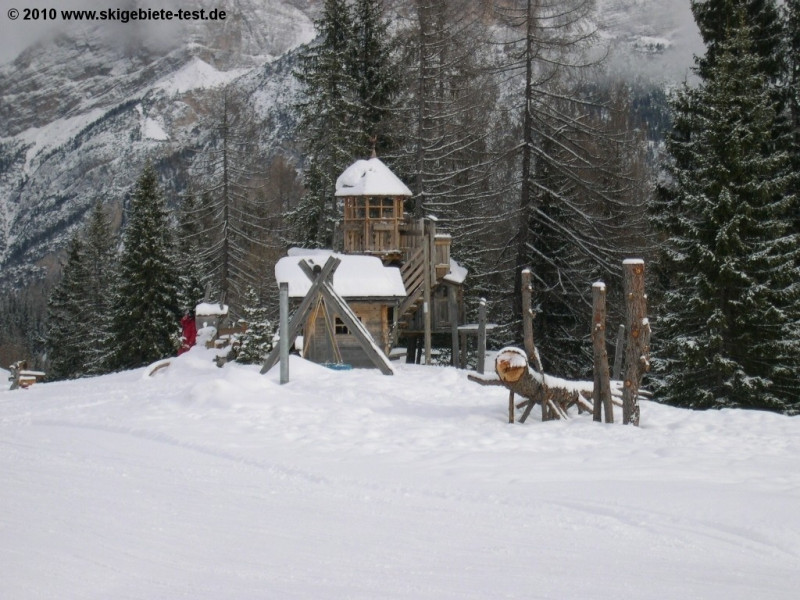 Alta Badia surrounded by the magical Dolomites is the ideal vacation spot for families. The entrance villages to the ski resort provide numerous possibilities for kids to learn skiing under professional care while the parents can explore the ski resort. (More information can be obtained at the base stations or on the homepage www.altabadia.org). A family highlight is the Kids Fun Park of the “Scola di Schi Dolomites” featuring a toboggan trail, tubes and a tippi (with costs). It is situated at the Piz La Ila which is easily accessible via the gondola from La Villa. The predominantly easy terrain enables families to spend a fun and relaxed day on the slopes even with inexperienced skiers. Because Alta Badia leaves nothing to be desired for families we award the ski resort with 9 stars.
