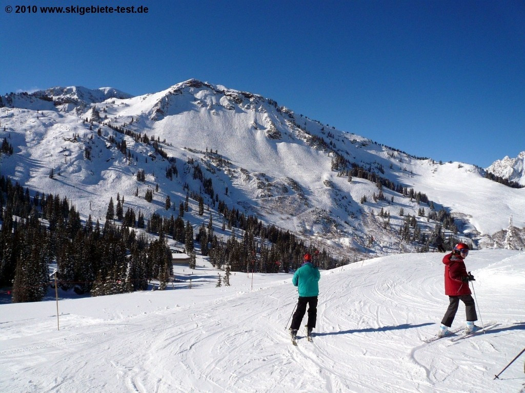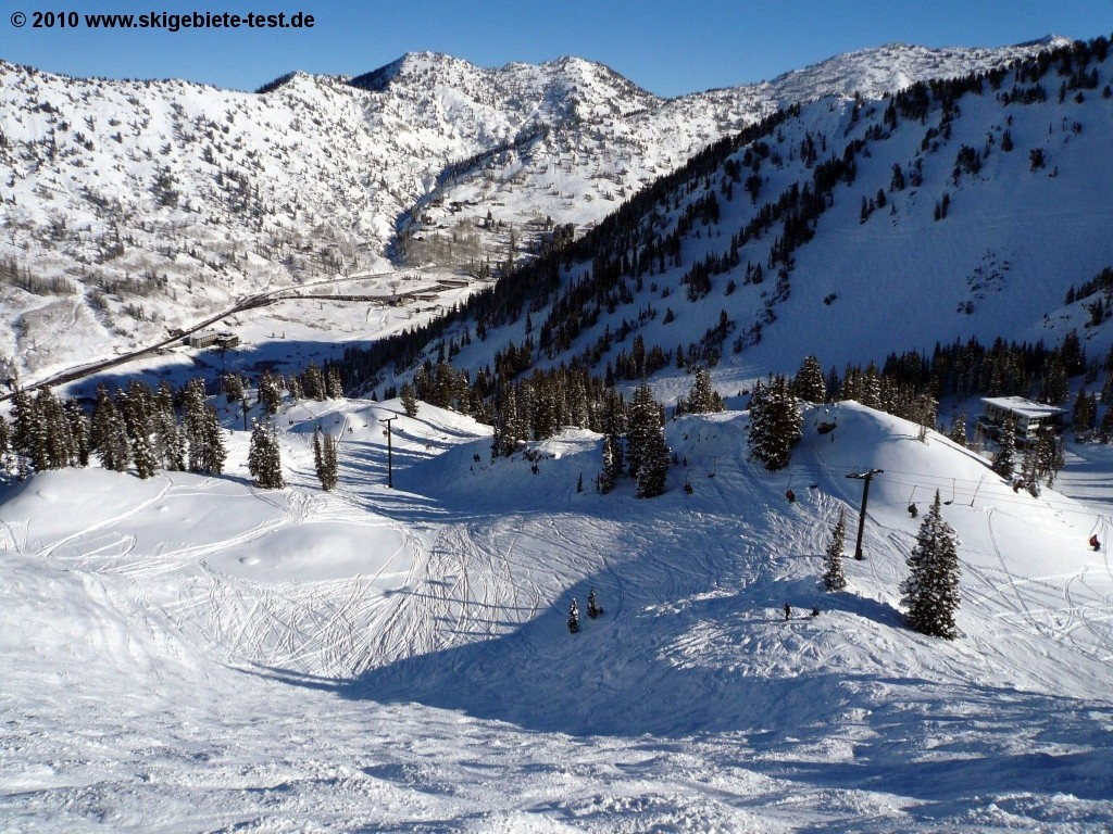 Alta features some of North Americas best skiing conditions. In our test we do not really consider snowfall and snow conditions but it’s definitely a plus factor that the super steep slopes at Alta are covered by thick snow cover. Even though the ski resort excels especially in the expert and intermediate skier category we can also recommend Alta to families. The great beginner area at the “Sunnyside” lift and the tow lifts in the valley offers enough diversity to keep the kids busy the entire day. If it is advantageous to close the ski resort to snowboarders is questionable. Boarders do miss out on wonderful off piste terrain but are compensated in Snowbird which is only 5 minutes away.