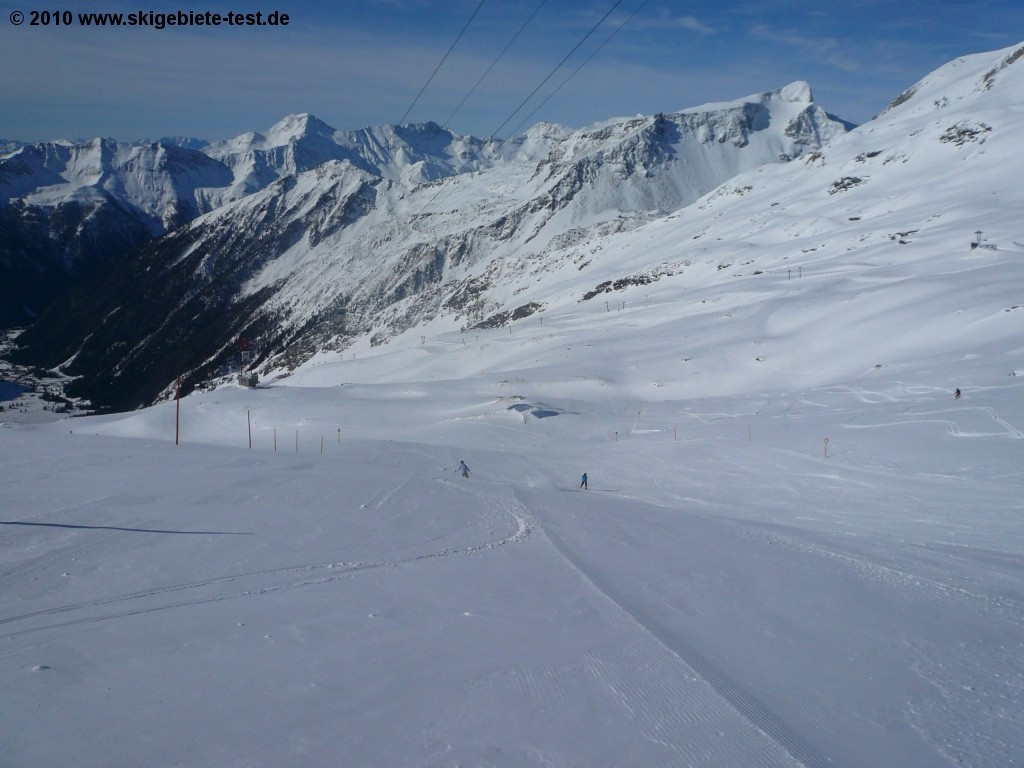 Intermediate skiers will be entertained by a total of 5 red and 5 black kilometers of trails at Ankogel Mallnitz. Thanks to its altitude, the upper portion of the ski area (1945m – 2636m) gets great snow all the way into the spring. We didn’t find a single trail between the upper terminal of the intermediate station of the Ankogelbahn II or off the Ankogel lifts that we didn’t find worth recommending. Even the black slopes up there were intermediate-friendly. The most challenging trail in the entire area is the no.2 (Ankogel-Talabfahrt) from the intermediate station. One drawback at the resort are the aging cable cars Ankogel I and II, so you’ll want to plan in a little waiting time at the base and intermediate stations. If after spending a day at Ankogel Mallnitz you feel the need for a little more variety, you can take a trip over to the Moelltaler Glacier, just a 30-minute drive from there.