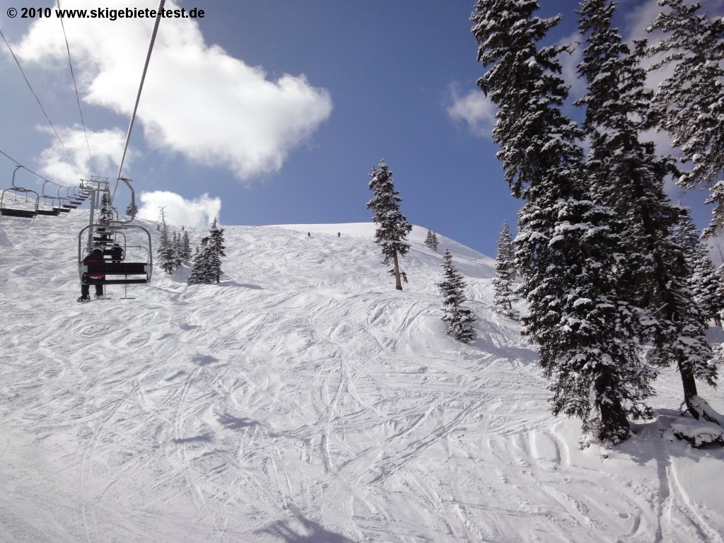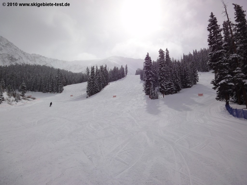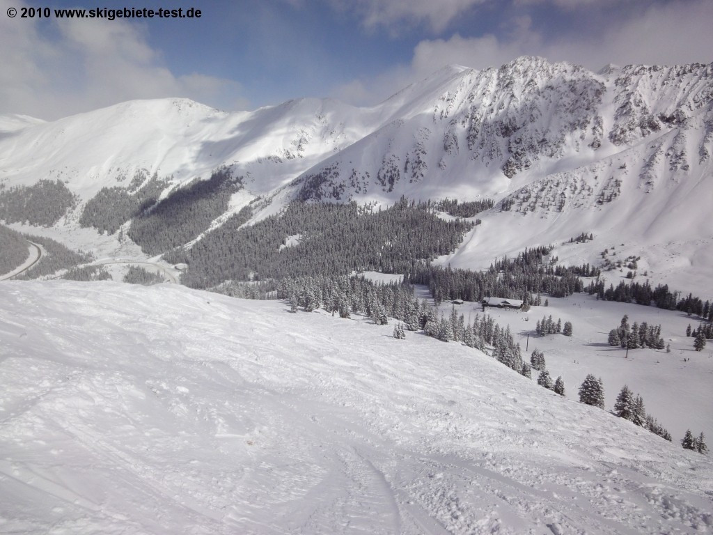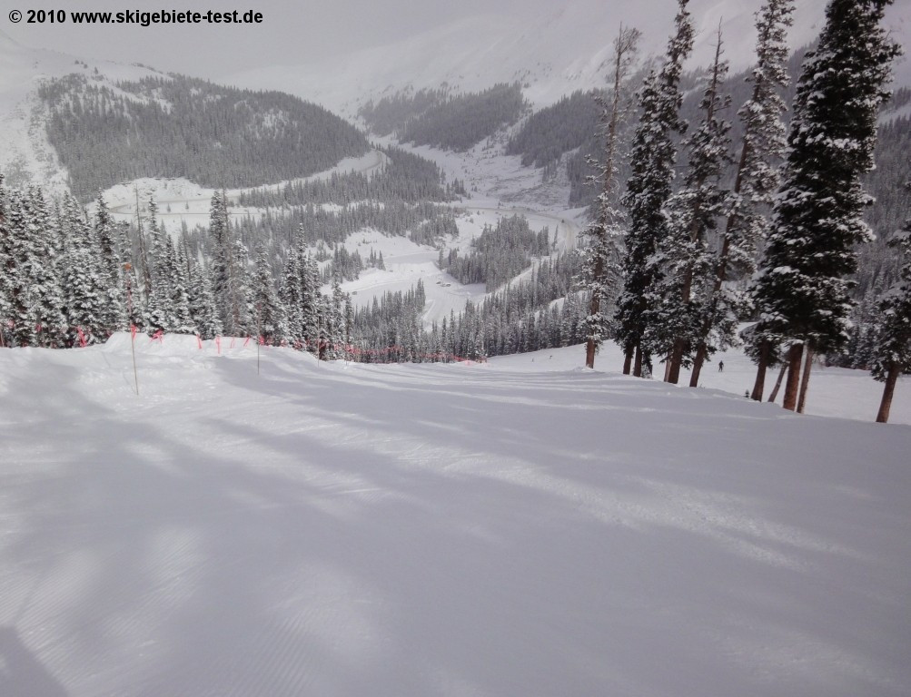 Ski areas in the US are known to have many more mogul and deep snow runs than groomed ones, and Arapahoe Basin is no exception. In the US, intermediate runs are marked blue (in Europe usually red). Most blue runs in A-Basin are located off of the Lenawee Mountain lift. Of these, Dragon, West-Gully and Dercum’s Gulch were extremely well-groomed despite the fresh snow on the day of our evaluation. The High Noon and Ramrod trails off of the Exhibition lift also offer great carving fun. The trails off of the Pallavicini lift are a different story. These consist almost exclusively of mogul runs and extremely difficult deep snow runs. Only the Slalom Slope and Grizzly Road runs had been groomed on the day of the tests. In the Montezuma Bowl there were also very few groomed runs. So if you like switching off between carving runs and challenging mogul slopes or deep snow runs, you’ll love Arapahoe Basin. But if you’d rather spare your quad muscles and stick to the well-groomed carving runs, you won’t find very many options.