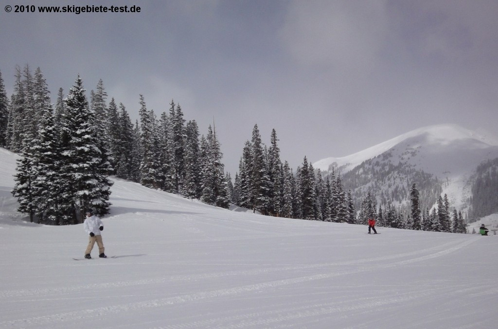 To make a long story short, Arapahoe Basin receives almost a perfect rating of four and a half out of a possible five stars in the snowboarding category. For expert snowboarding we could easily give them a perfect score. But if you’re still learning to snowboard or you’re just not yet quite brave enough to throw yourself down the difficult deep-snow terrains, you might wish you had a few more runs to choose from. Freestylers, on the other hand, will find everything they’ve ever wished for: a freestyle park has been constructed with some boxes and rails which are best suited for beginner freestylers. The Treeline Terrain Park over the Black Mountain Lodge, however, is better suited for boarders and freestylers that aren’t afraid to take some bigger jumps. At almost 12,000 feet, the Treeline Terrain Park is the highest-elevated snowboard freestyle park in America and is open every year until June. The only thing we didn’t find in A-Basin was a half-pipe. If you like deep snow terrain, your possibilities are endless on Pallavicini and in the Montezuma Bowl.